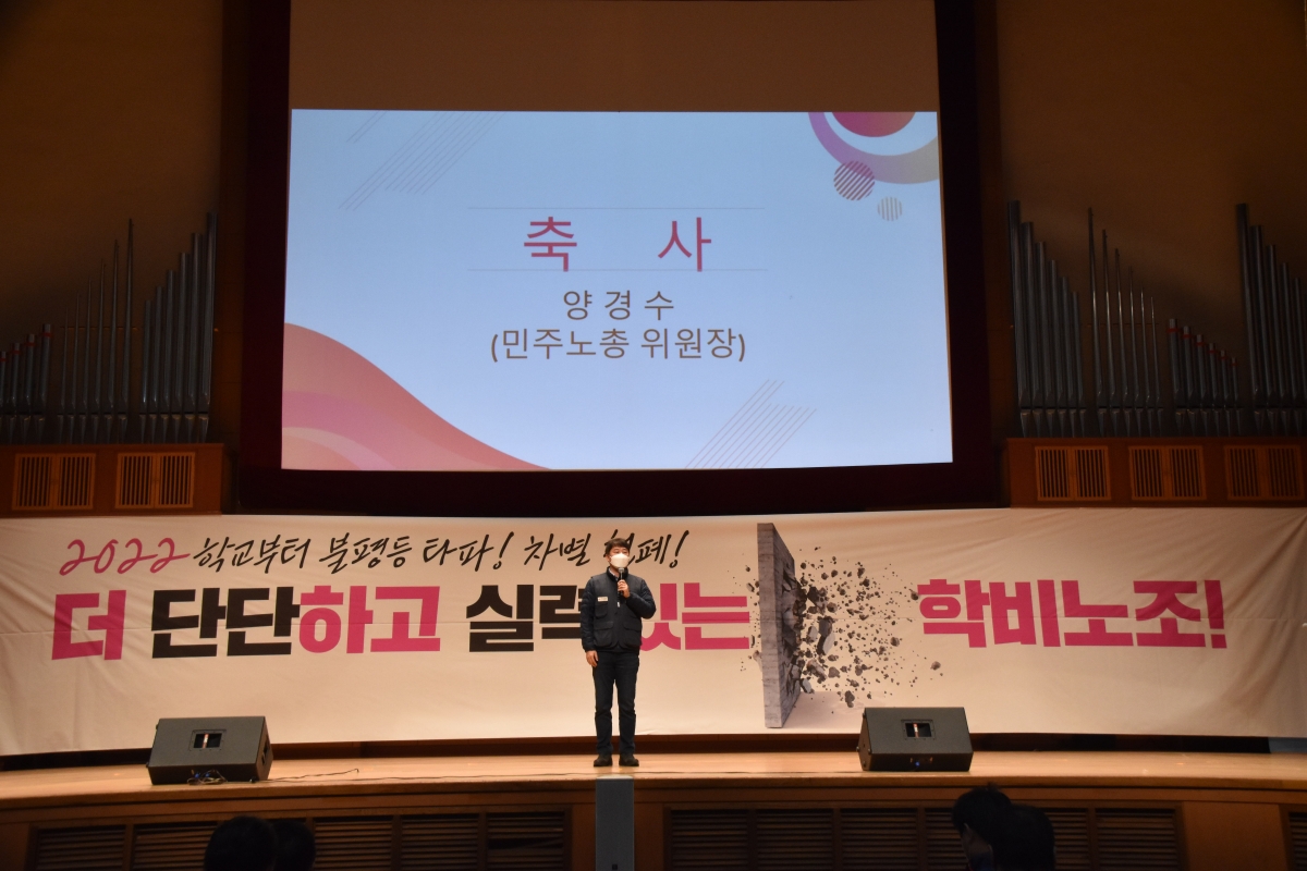 1부 사전대회에서 민주노총 양경수 위원장과 서비스연맹 강규혁 위원장, 공무원노조 전호일 위원장, 진보당  김재연 대통령 후보 등이 참석해 대의원대회를 축하해 주었다.