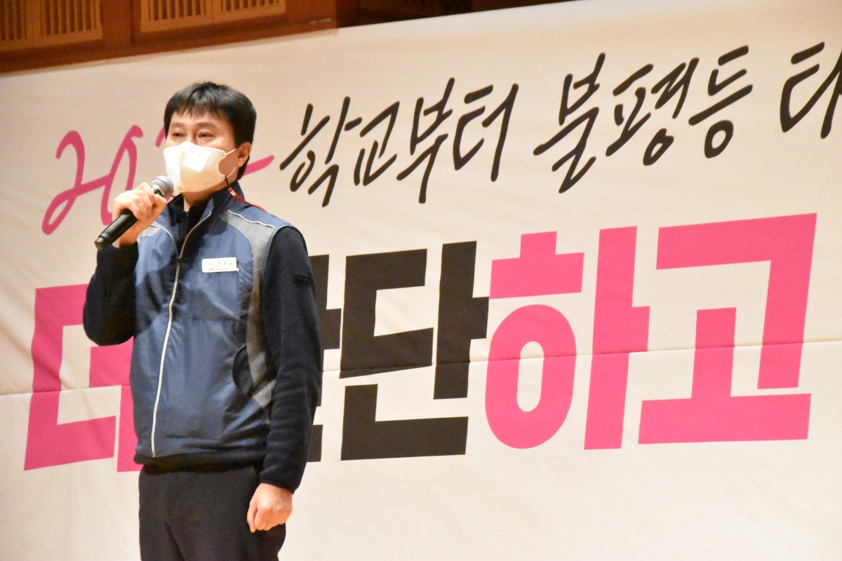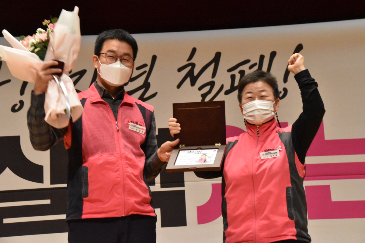 이어서 학교비정규직노동자들의 투쟁과 승리의 순간에 늘 함께 했던 민태호 전 사무처장에게 그 공로를 기리고 감사의 마음을 담아 감사패를 수여했다.