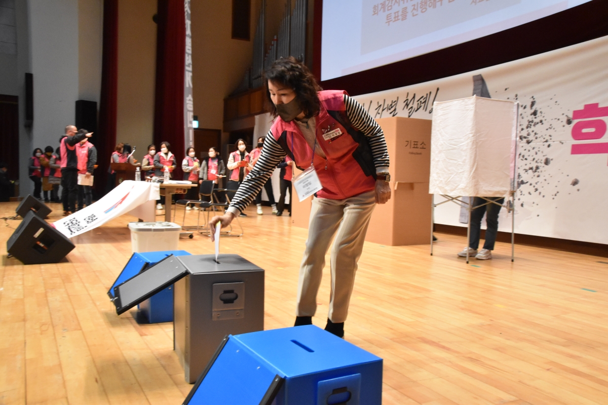 이후 2부 본격적인 대의원대회에서는 2021년 사업평가와 결산, 회계감사보고서 채택되었고, 2022년 사업계획과 예산안이 심의의결되었다.