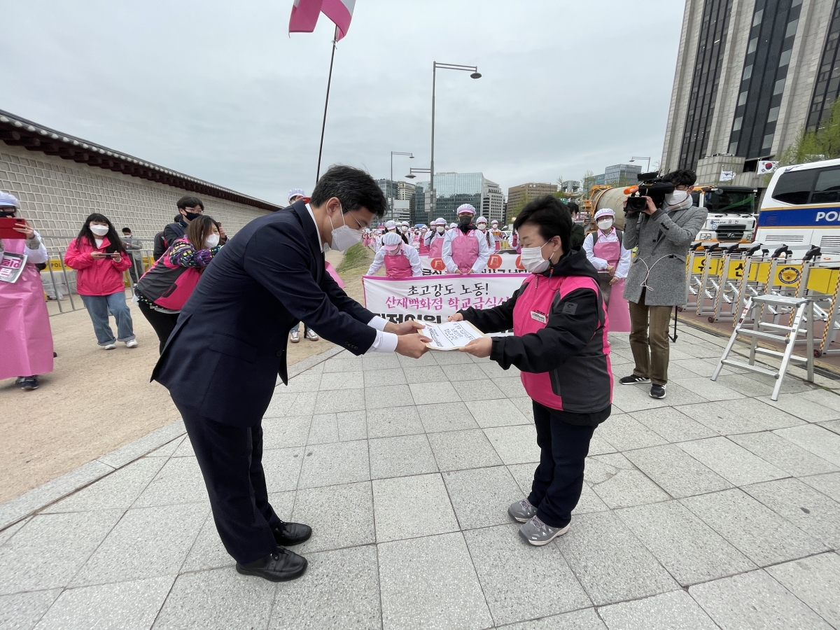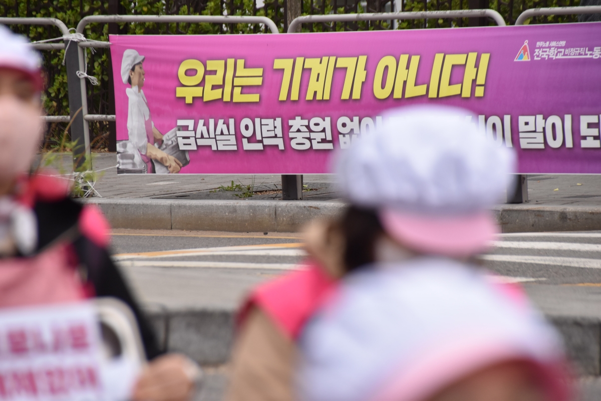 "산재사고와 폐암의 위험까지, 이런 현실 앞에 더 이상 물러설 곳이 없다"며 "학생들에게 맛있는 급식을 제공하고 모두의 안전을 생각한다면 지금 당장 배치기준이 하향되어야 한다"고 주장했다.