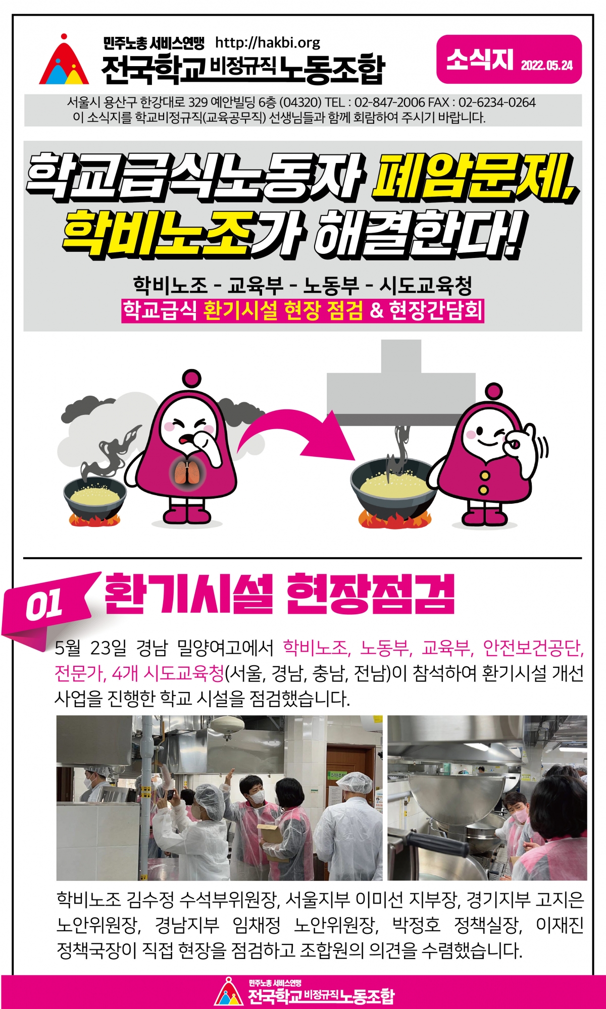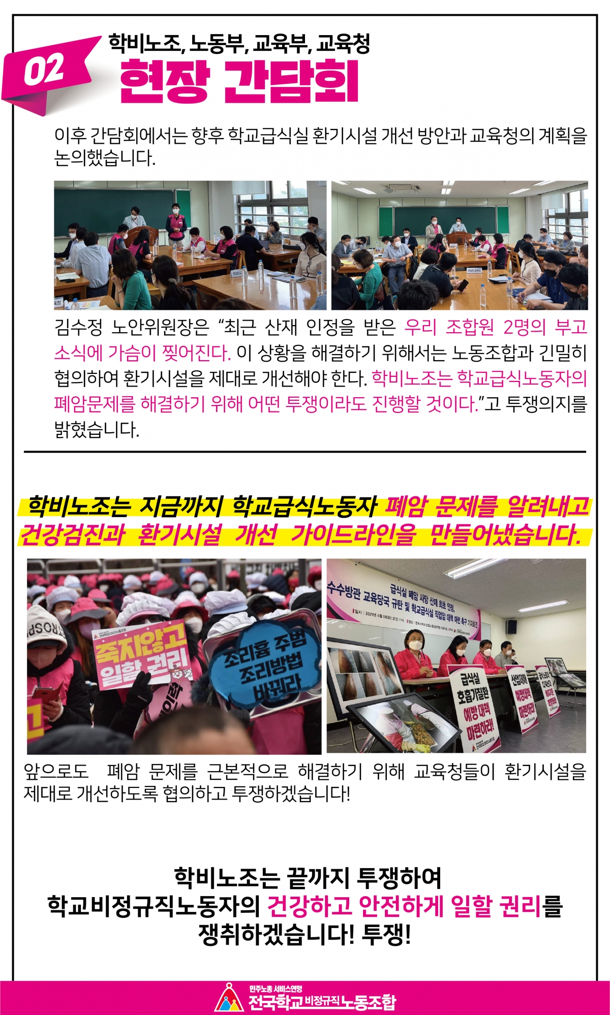 학교급식노동자 폐암문제, 학비노조가 해결한다!
