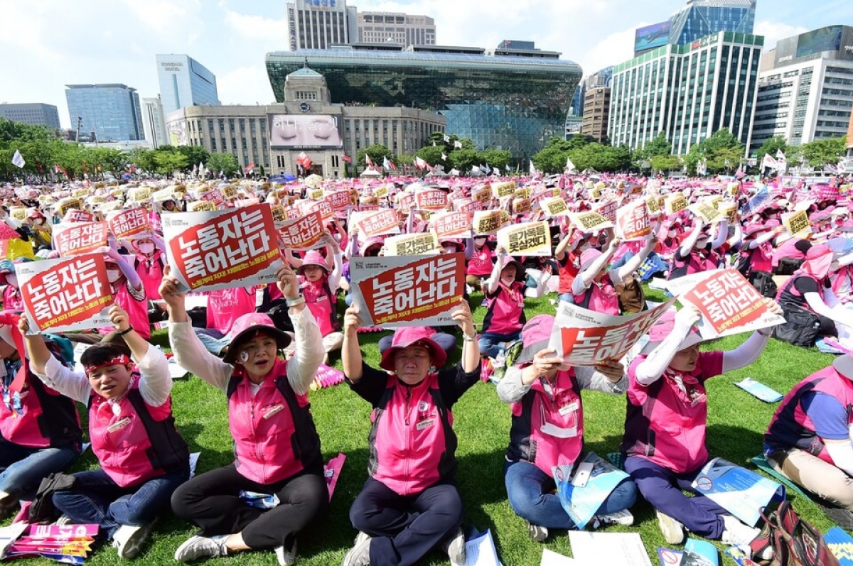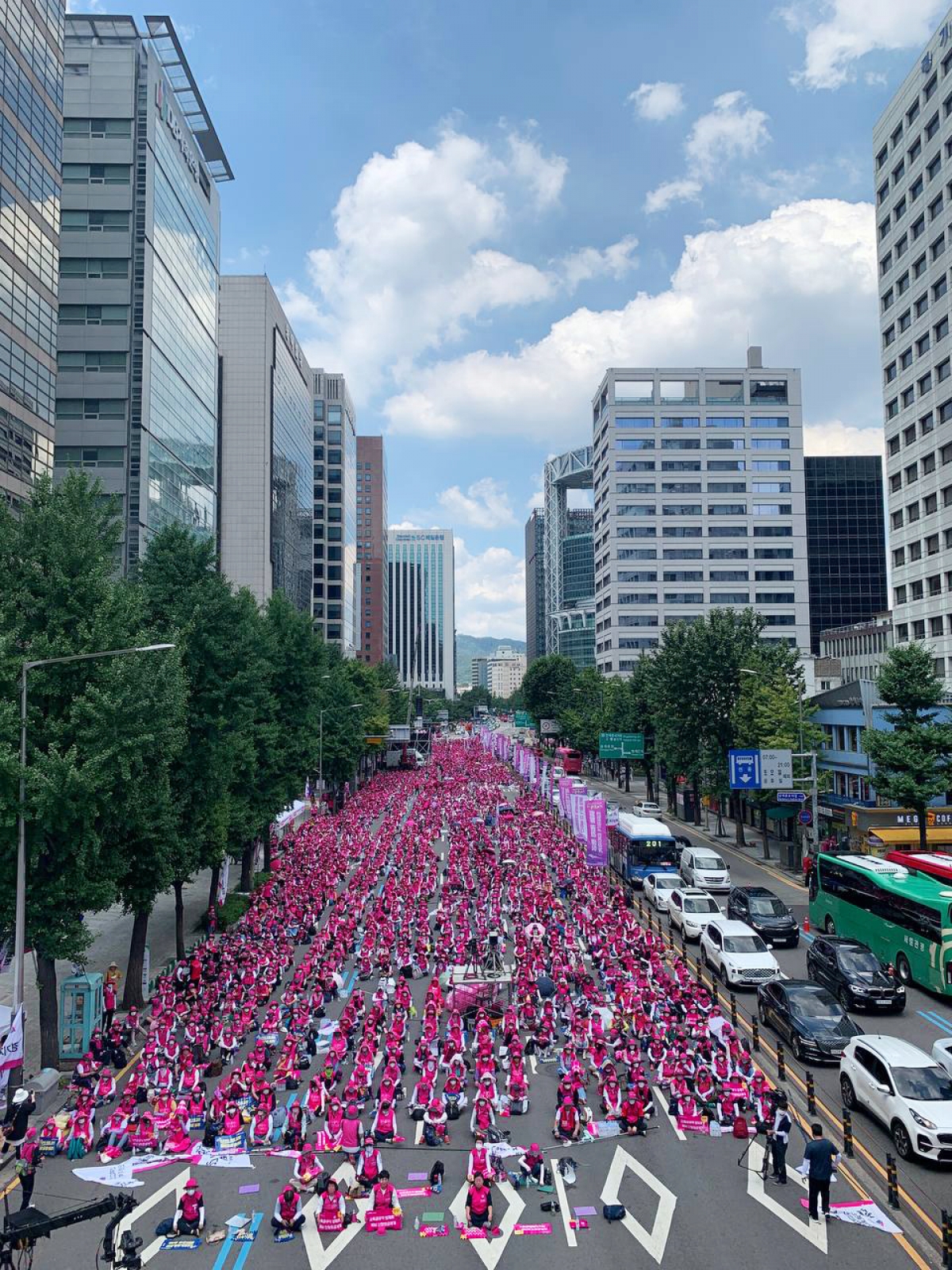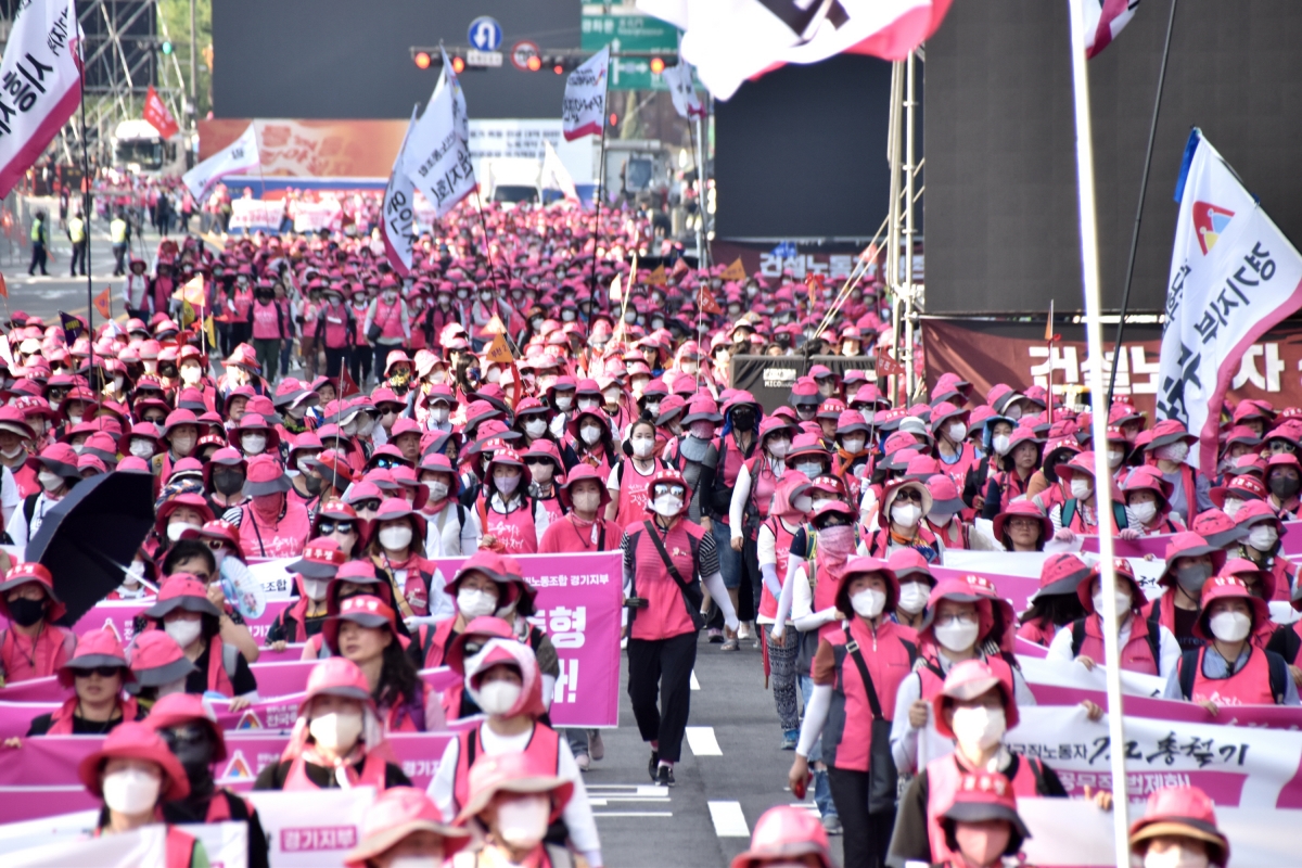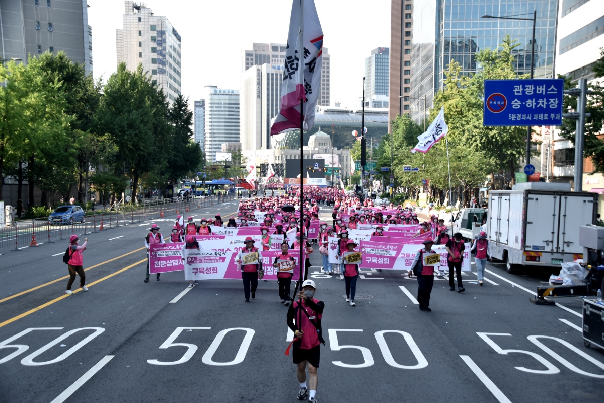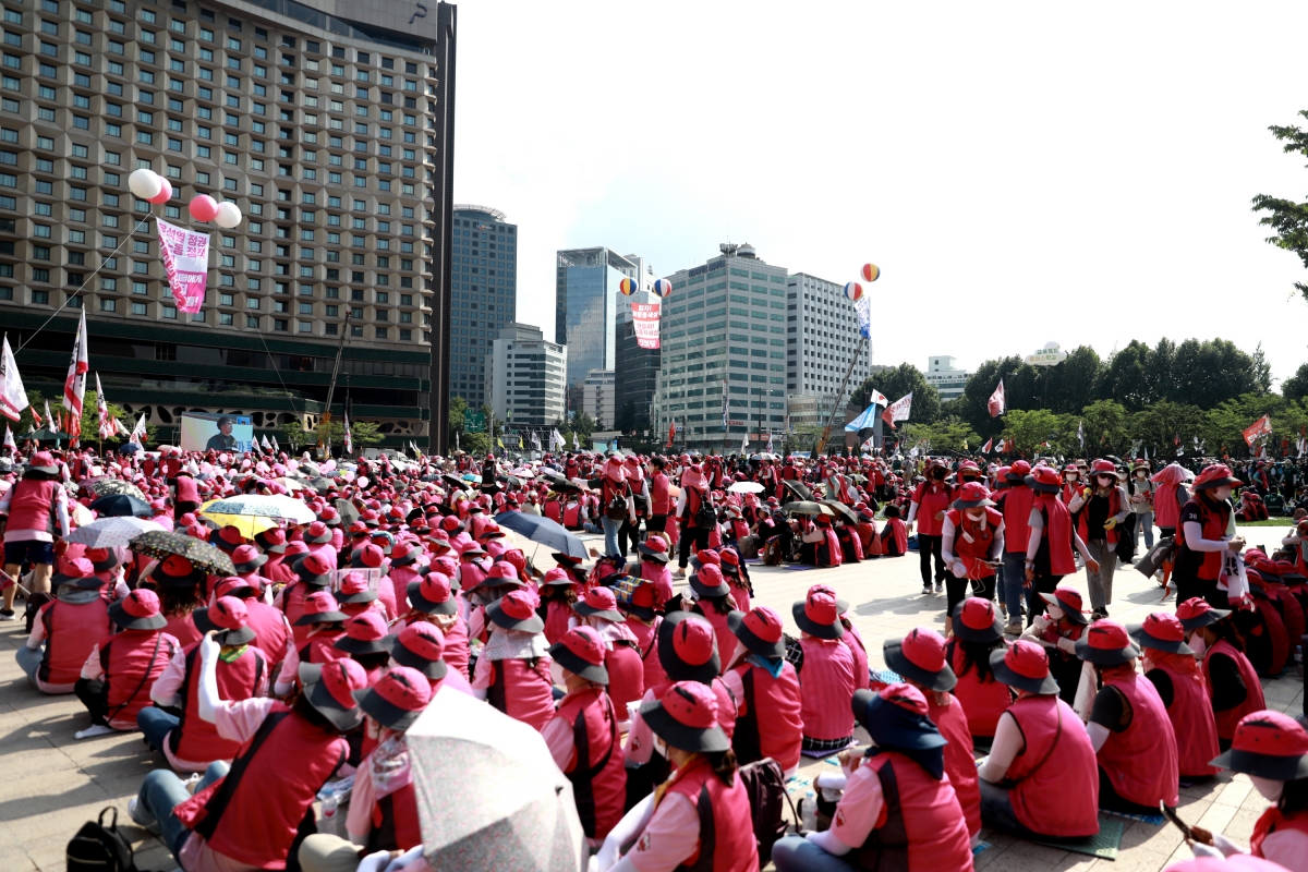 이후, 서울시청광장까지 행진해 6만여 조합원이 모인 민주노총 전국노동자대회에 결합해 '노동개악 저지! 최저임금 인상! 비정규직 철폐!'를 외쳤다.