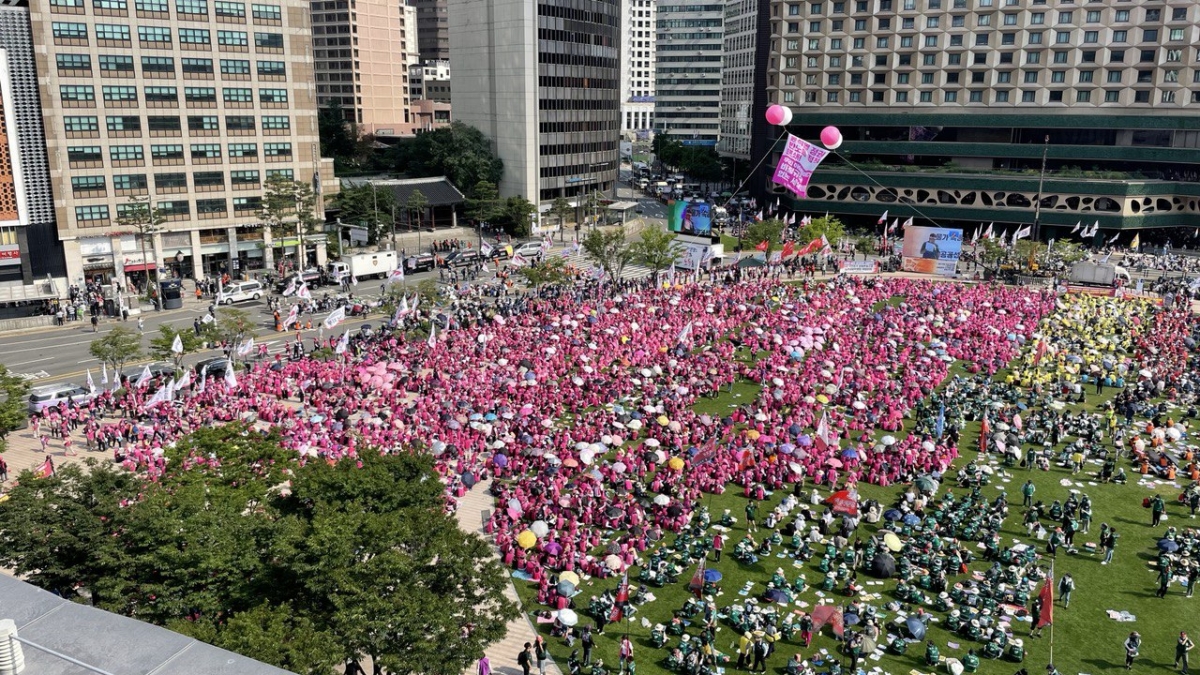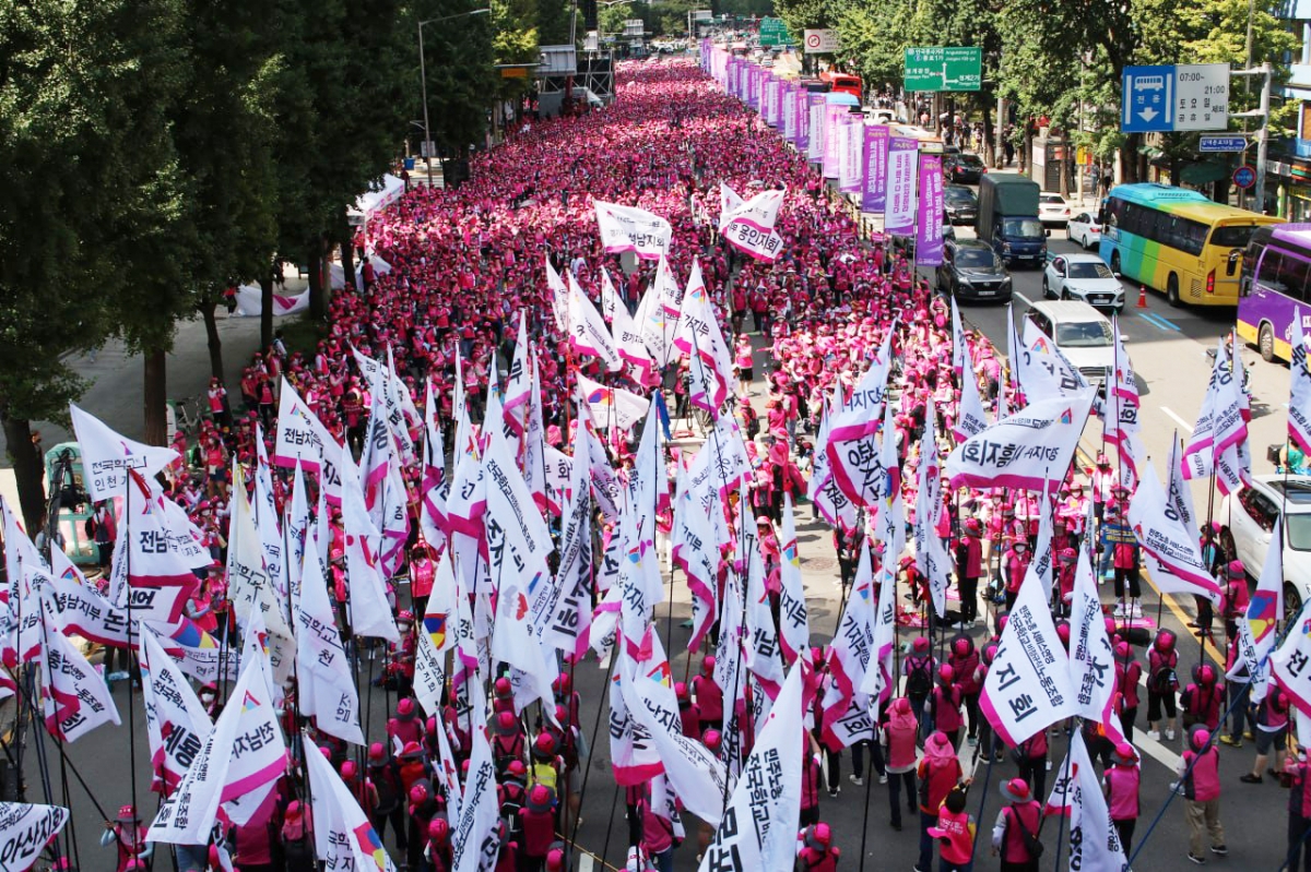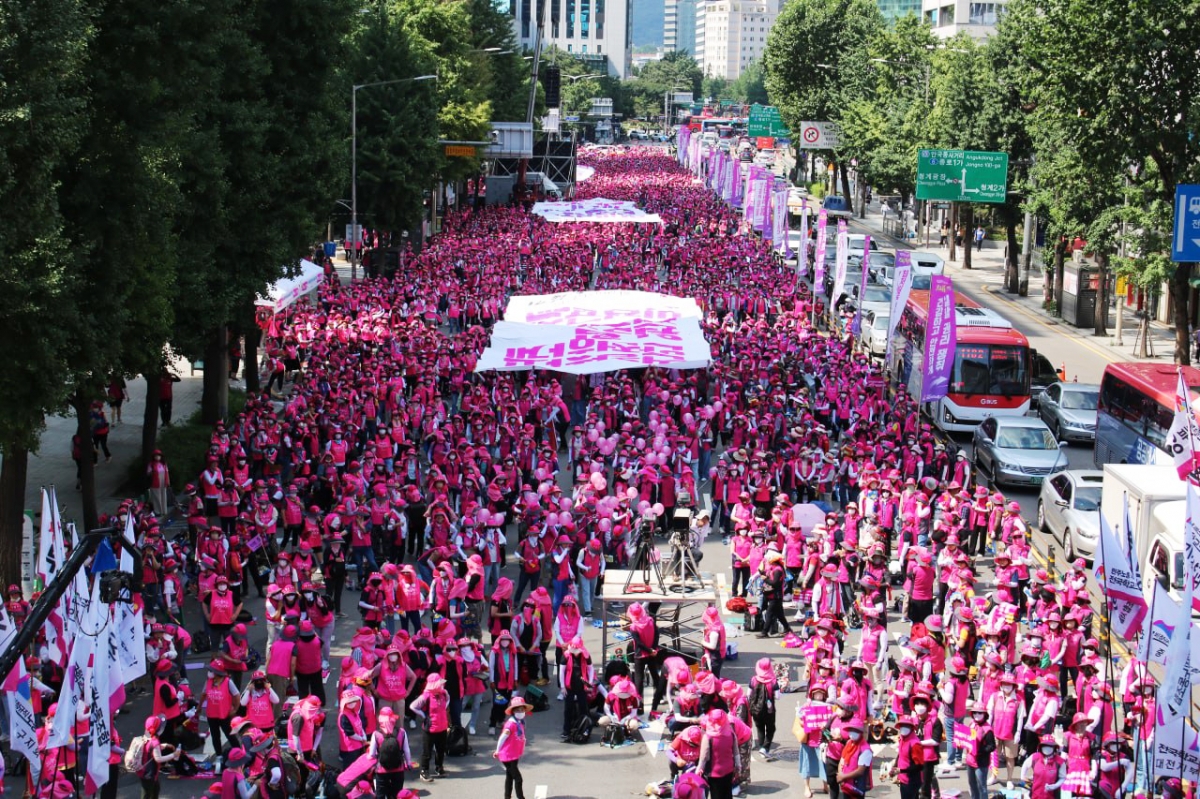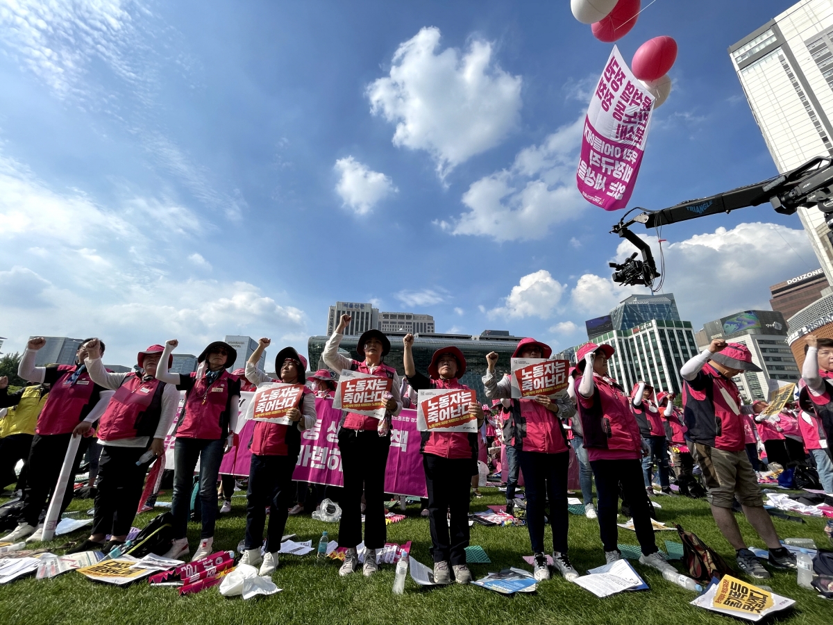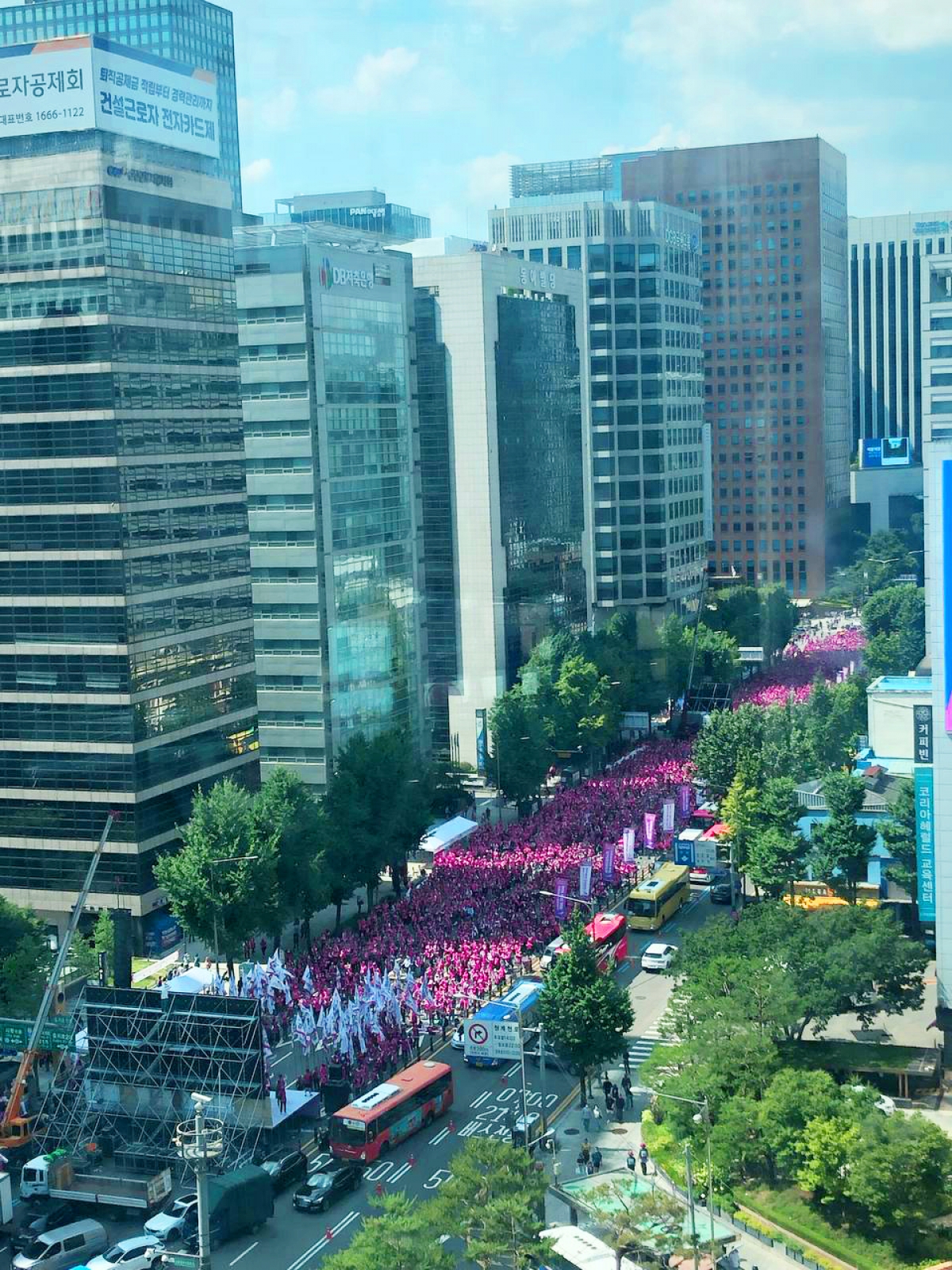 이후, 서울시청광장까지 행진해 6만여 조합원이 모인 민주노총 전국노동자대회에 결합해 '노동개악 저지! 최저임금 인상! 비정규직 철폐!'를 외쳤다.