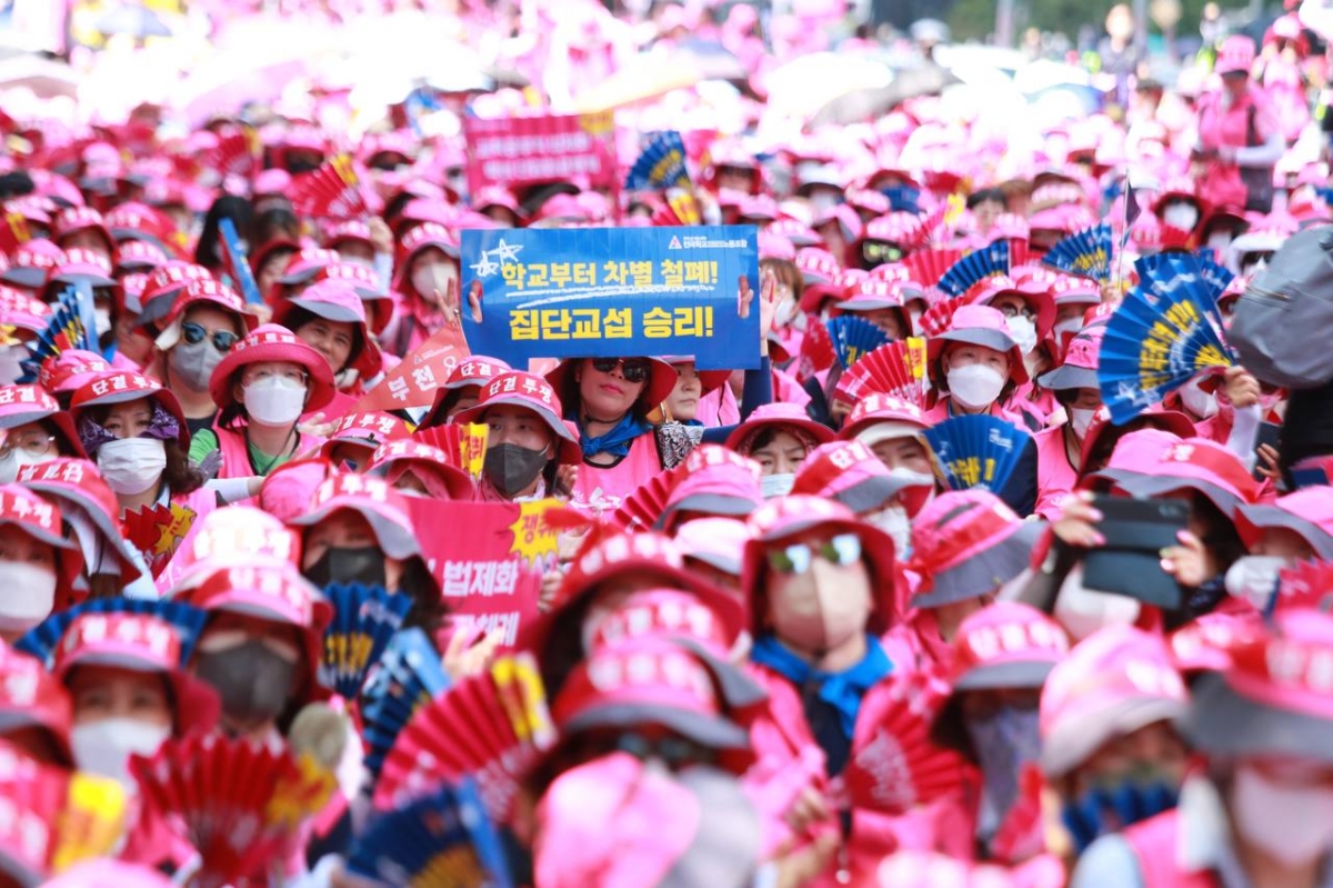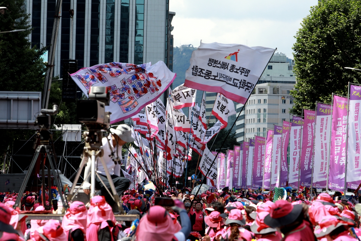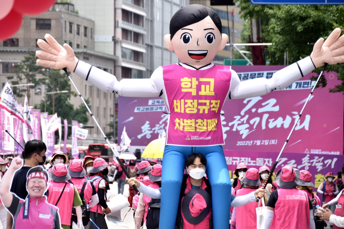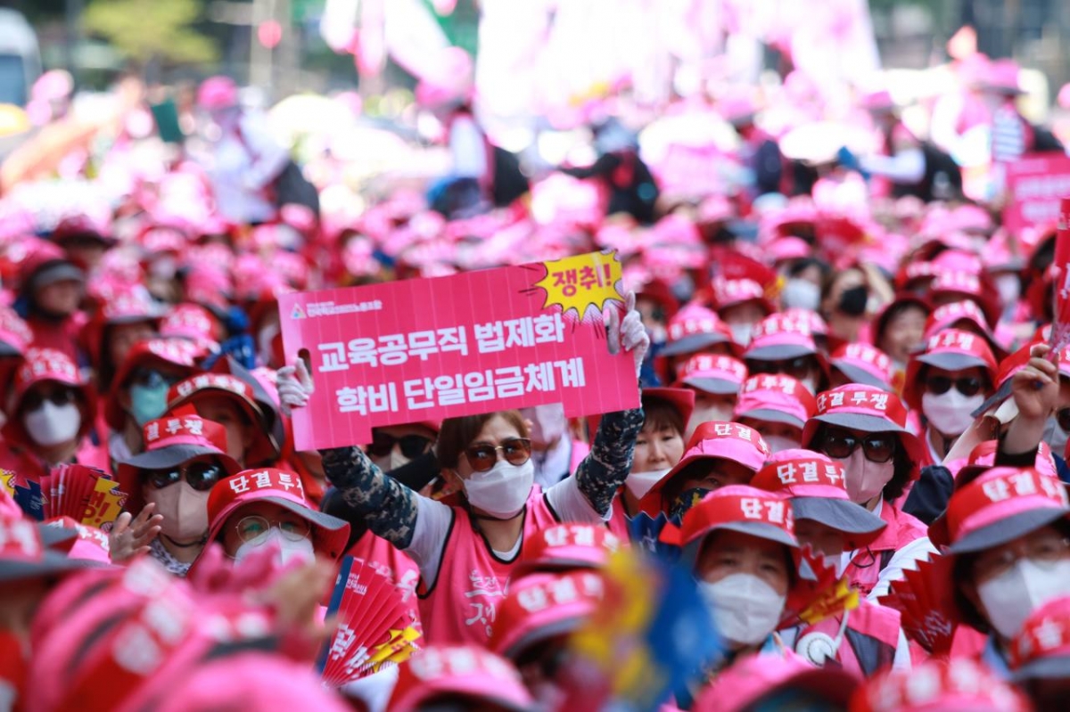 전국학교비정규직노동조합(학비노조)은 7월 2일에 '교육공무직 법제화! 학교비정규직 단일임금체계 개편! 1만 학교비정규직노동자 총궐기대회'를 열었다.