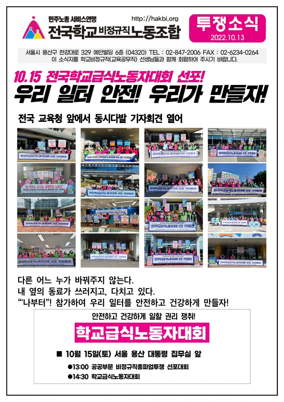 10.15 전국학교급식노동자대회 선포! 우리 일터 안전, 우리가 만든다!