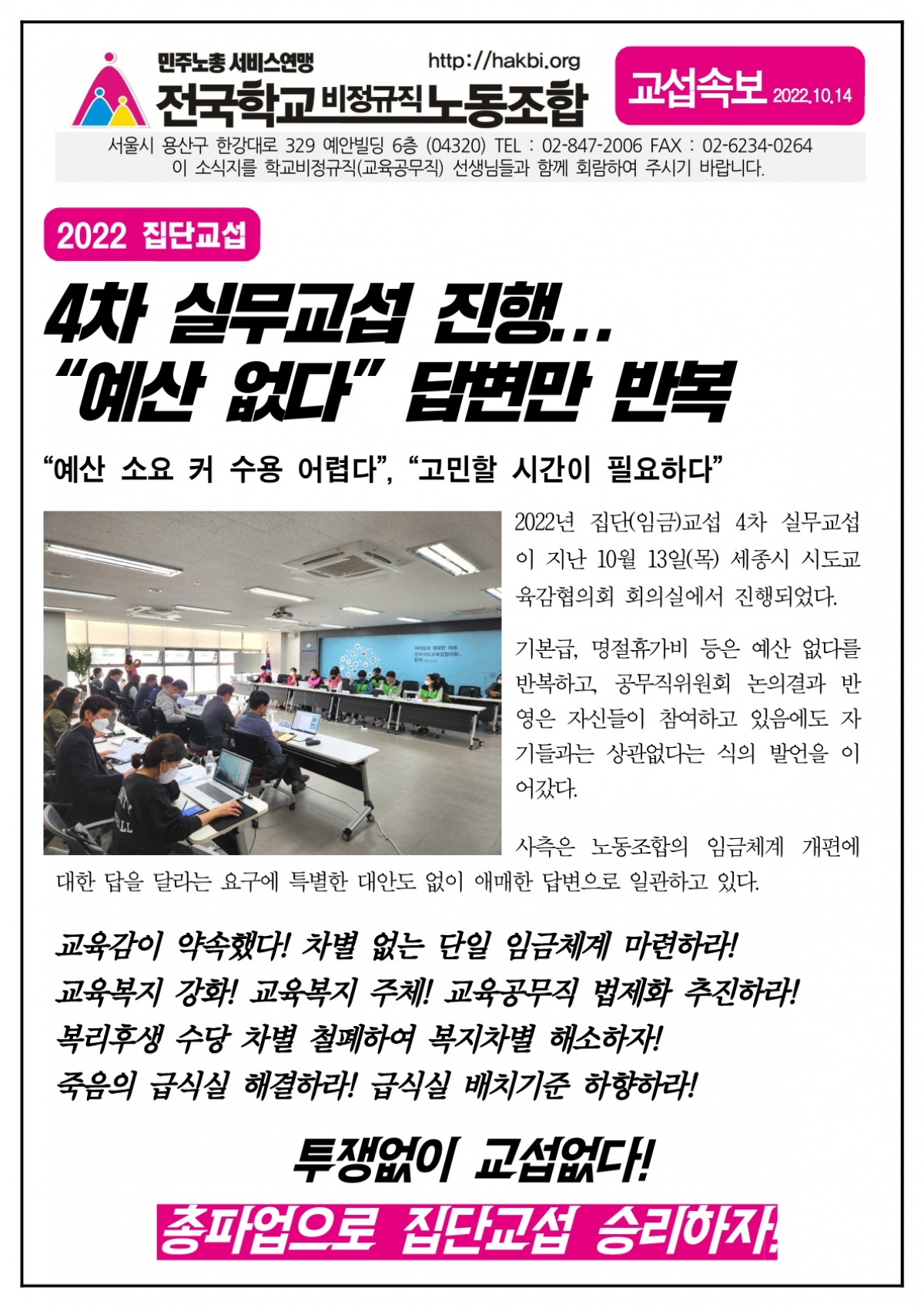 4차 실무교섭 진행, "예산 없다" 답변만 반복