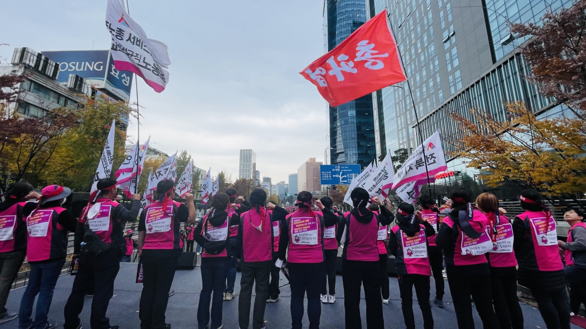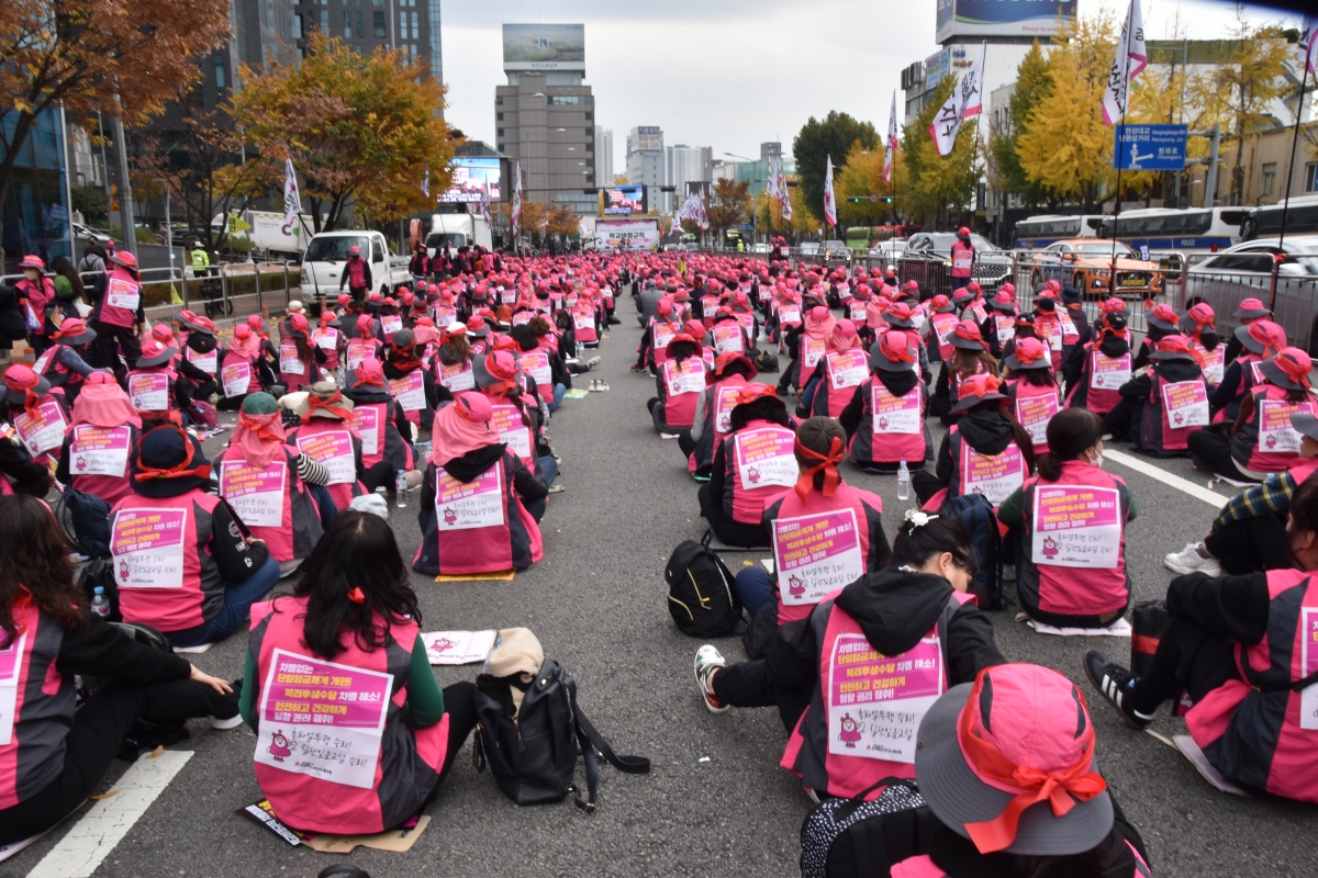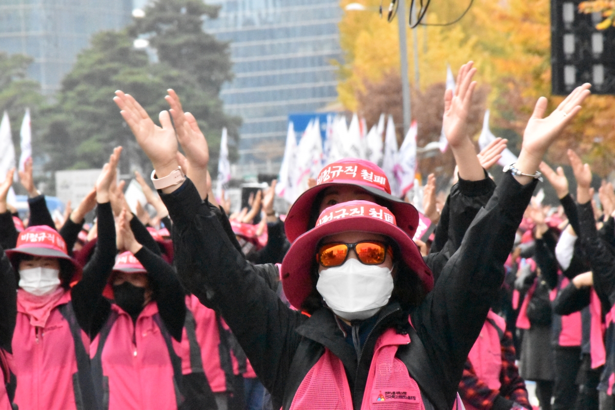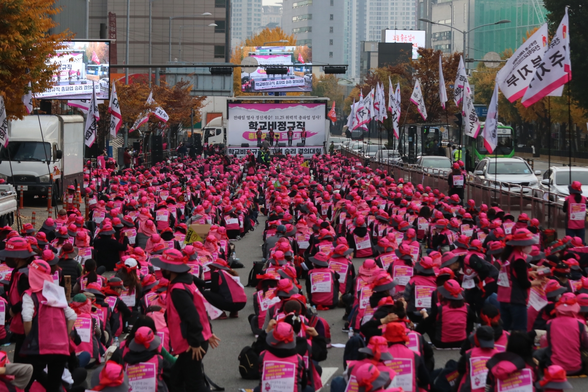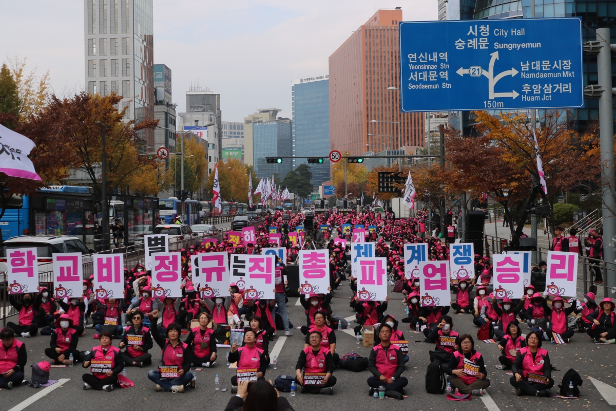 노동조합은 지난 12일(토) 서울역 KDB생명타워 앞에서 2천여명이 모인 가운데 ' ‘학교비정규직 총파업 승리 결의대회’를 열고 11월 25일 위력적 총파업을 결의했다.