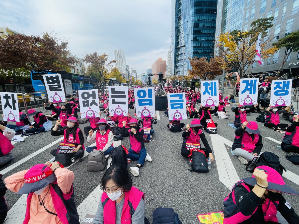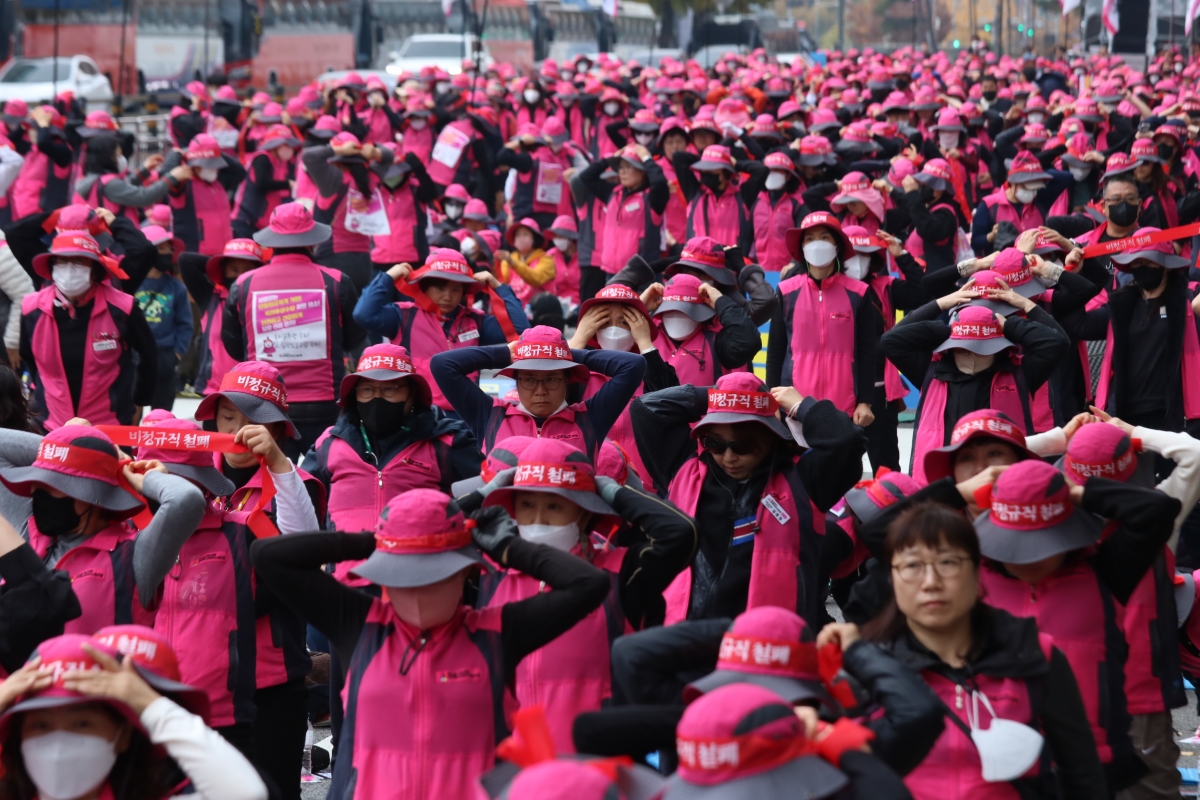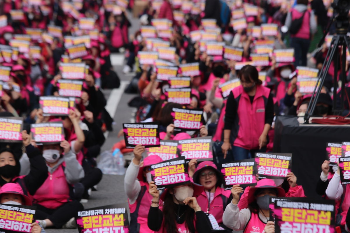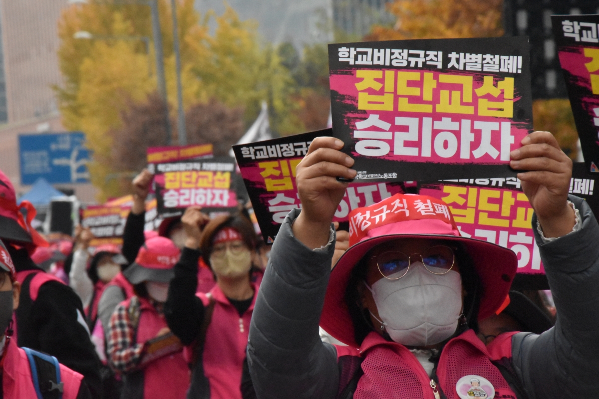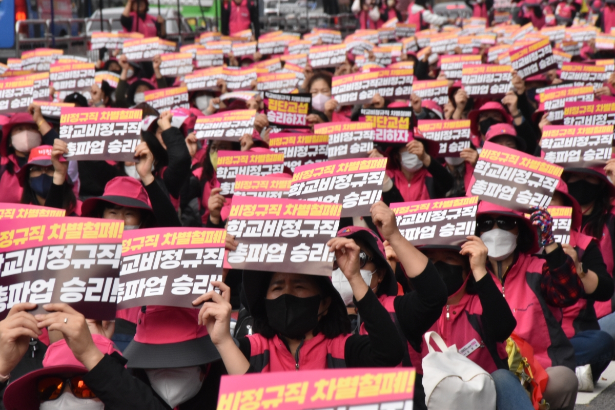 노동조합은 지난 12일(토) 서울역 KDB생명타워 앞에서 2천여명이 모인 가운데 ' ‘학교비정규직 총파업 승리 결의대회’를 열고 11월 25일 위력적 총파업을 결의했다.