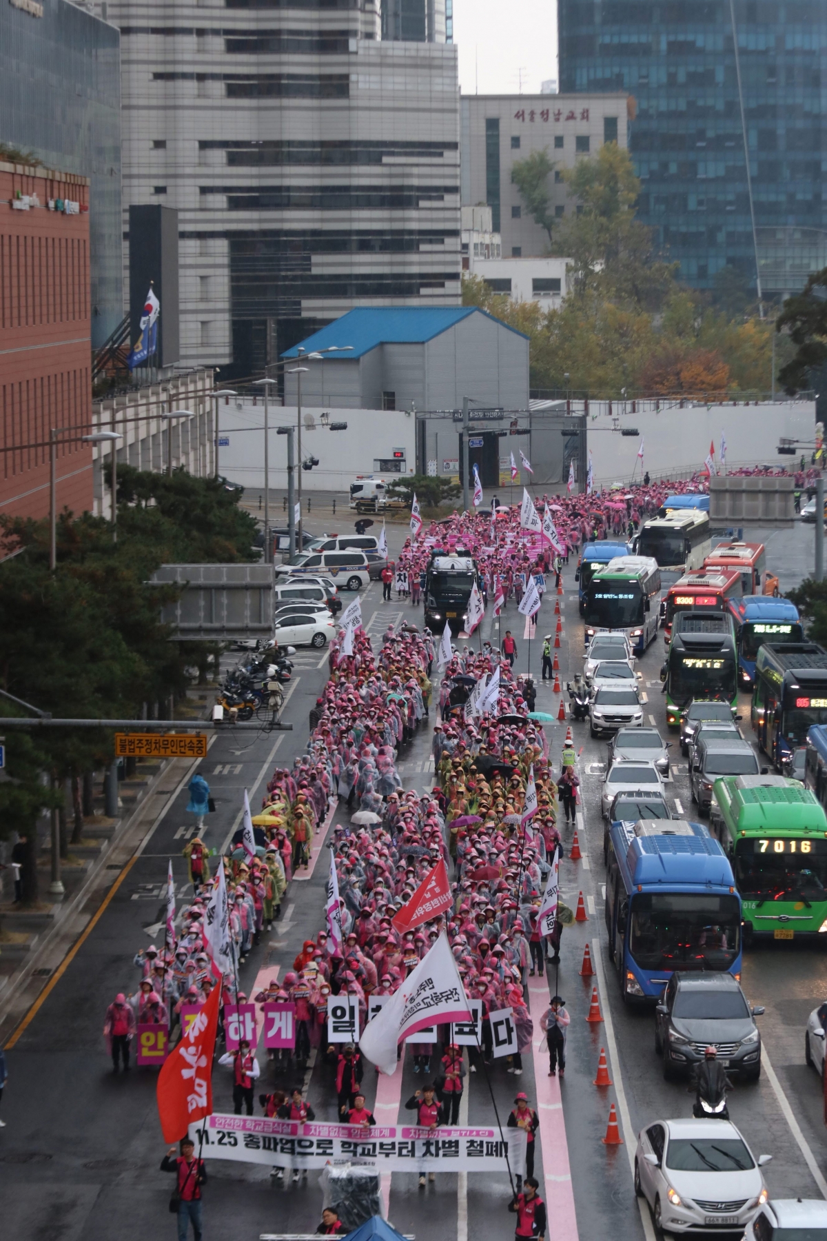 학비노조는 총파업 결의대회 후 시청광장까지 행진하며 시민들을 만났다. 이후 민주노총 전국노동자대회에 참가했다.