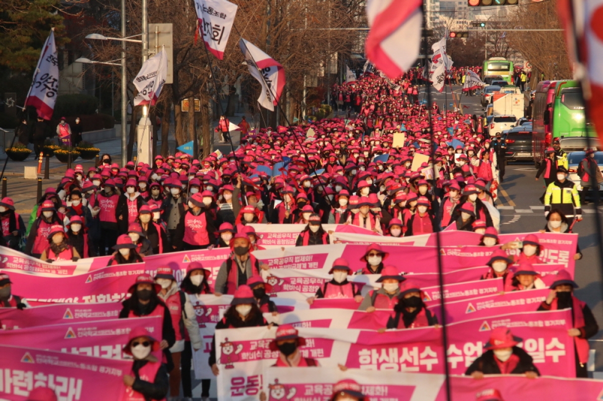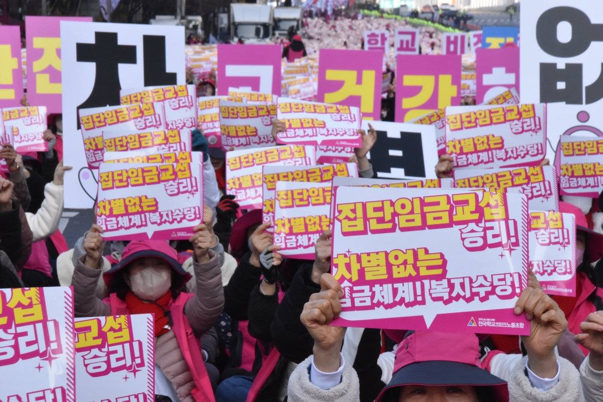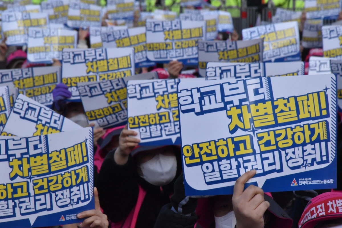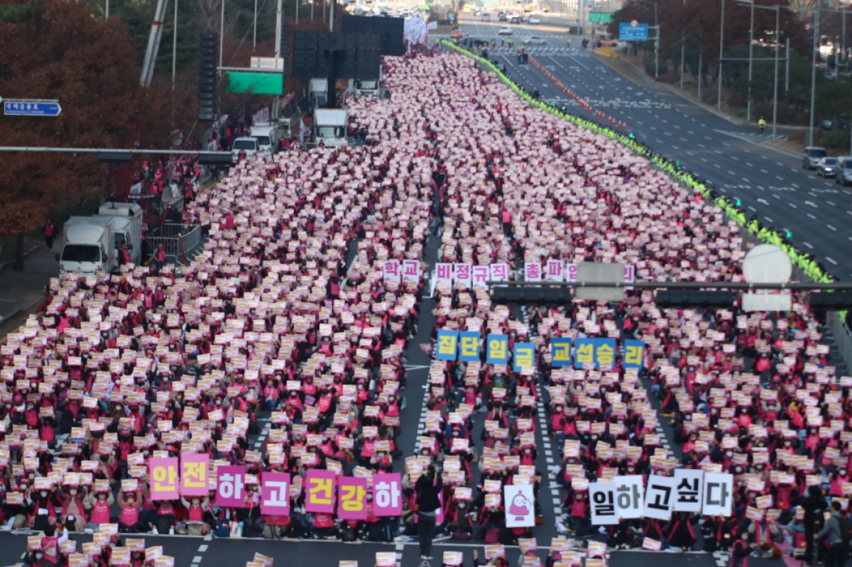 이후, 국회까지 행진하며 학교비정규직 차별 철폐와 학교급식실 폐암·산재 종합대책 마련을 위한 예산편성을 요구하며 총파업대회를 마무리했다.