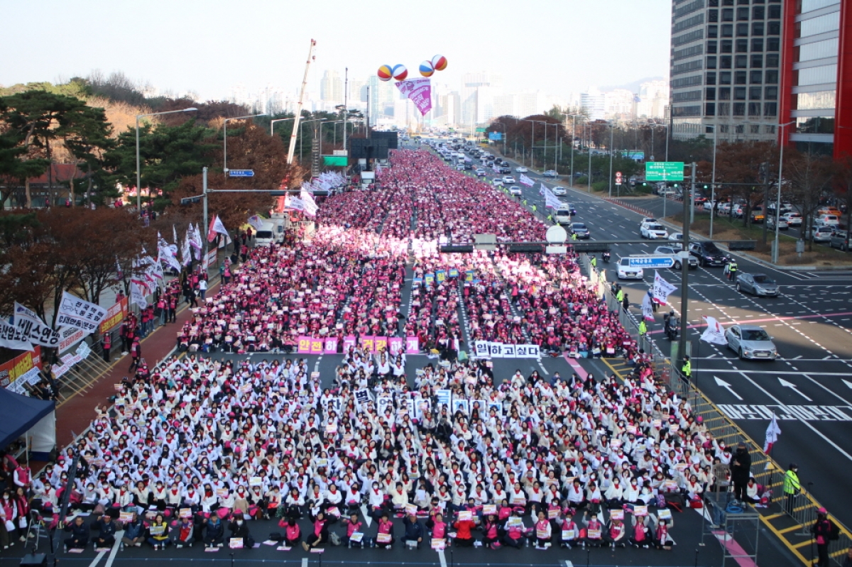 분홍빛 물결과 총파업 승리의 함성이 여의도와 국회에 울려 퍼졌다.