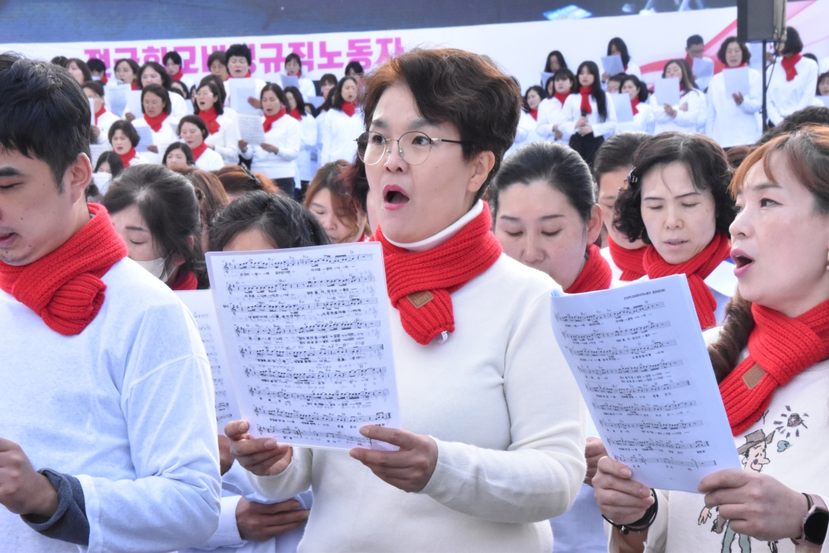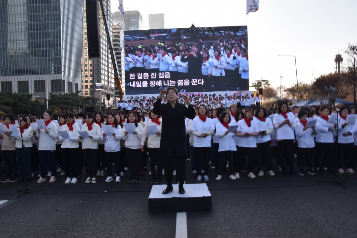 이 날 총파업대회는 1천여명의 조합원들이 '꿈을 꾼다'라는 대합창을 선보이며 우리가 행복한 학교, 안전한 학교를 만들겠다는 의지를 합창을 통해 보여줬다.