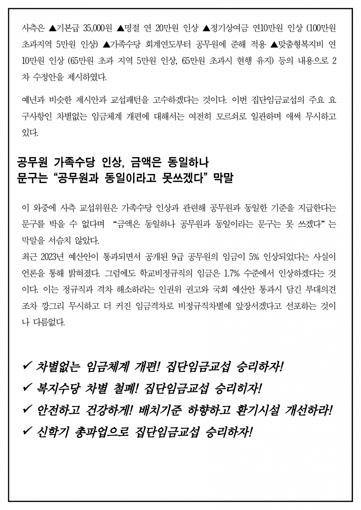 [교섭속보] 사측, 2차 수정안 제시했으나 더 커지는 임금격차