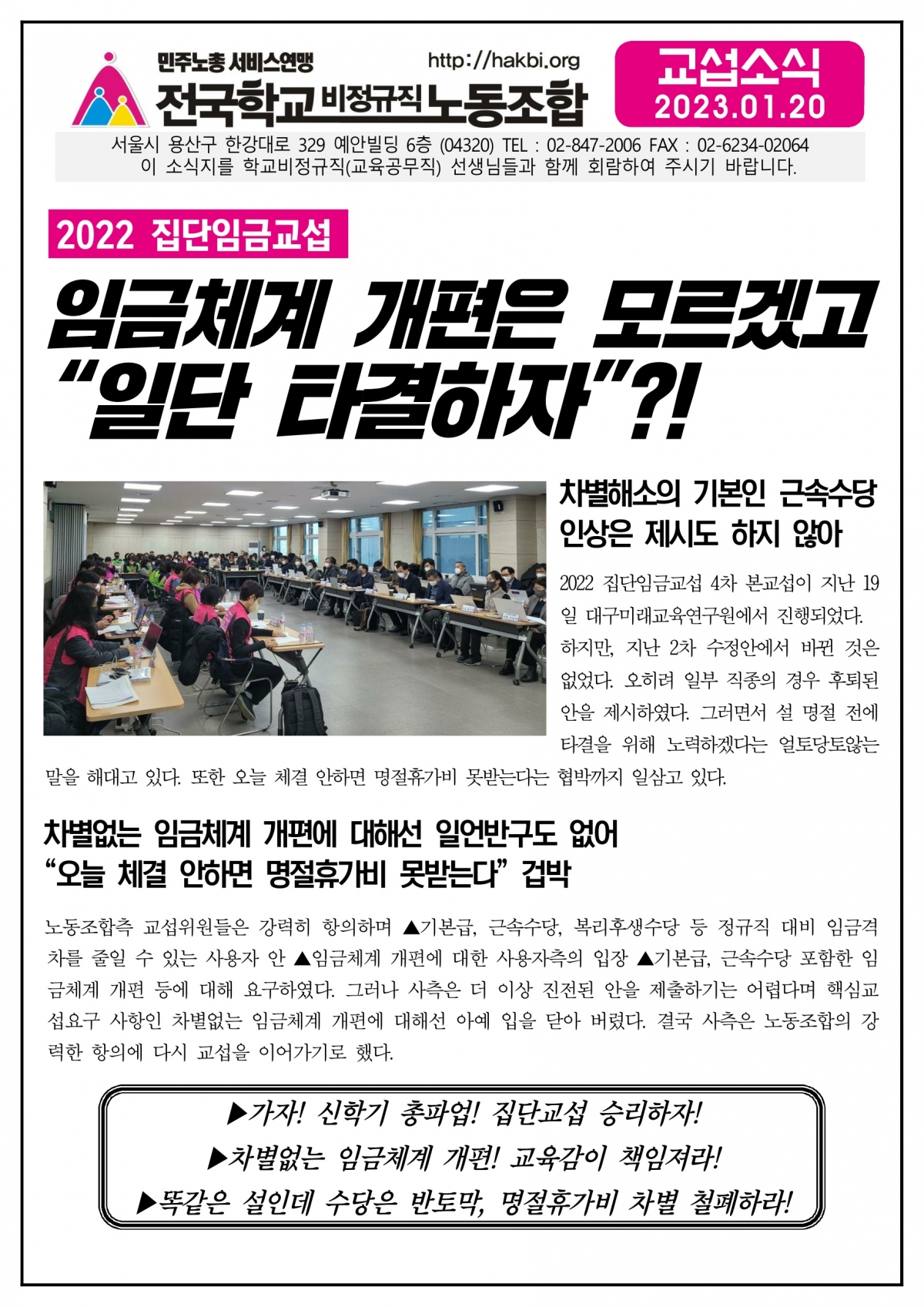 집단임금교섭, 교육감이 책임져라!