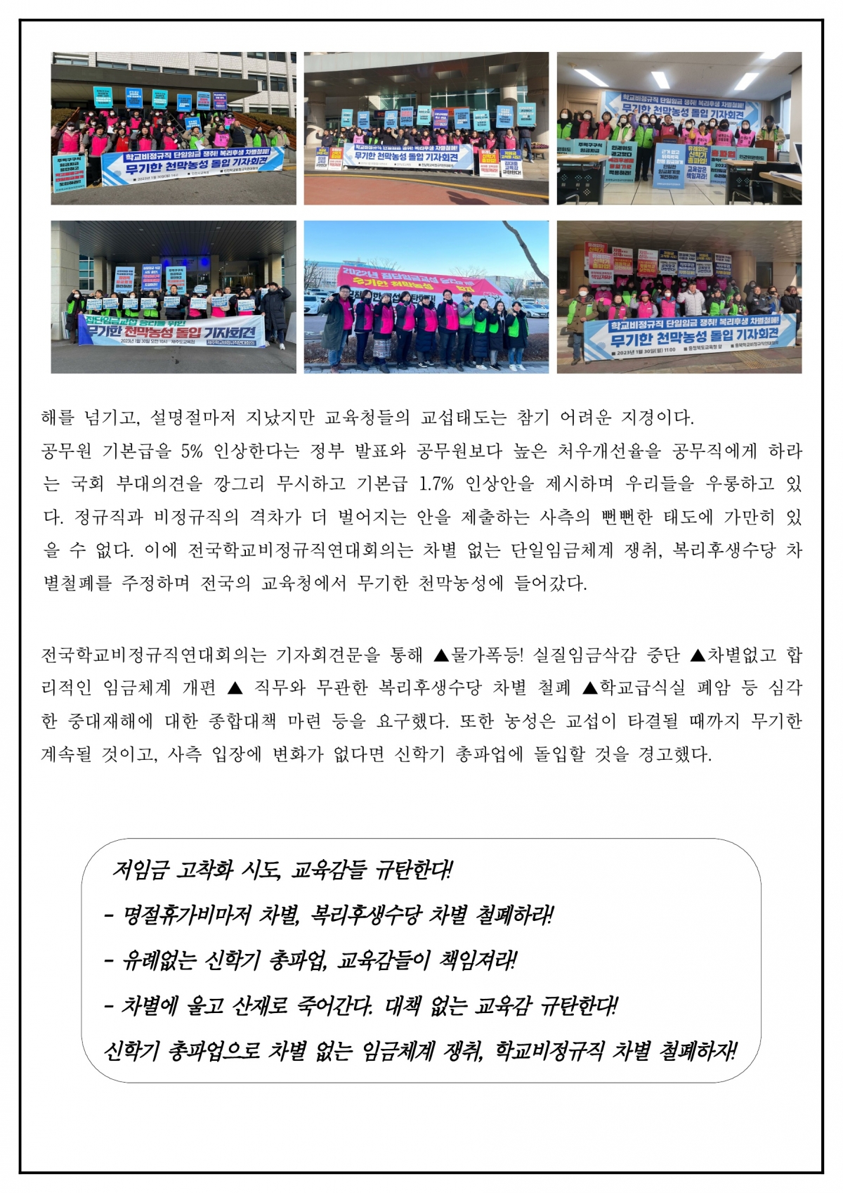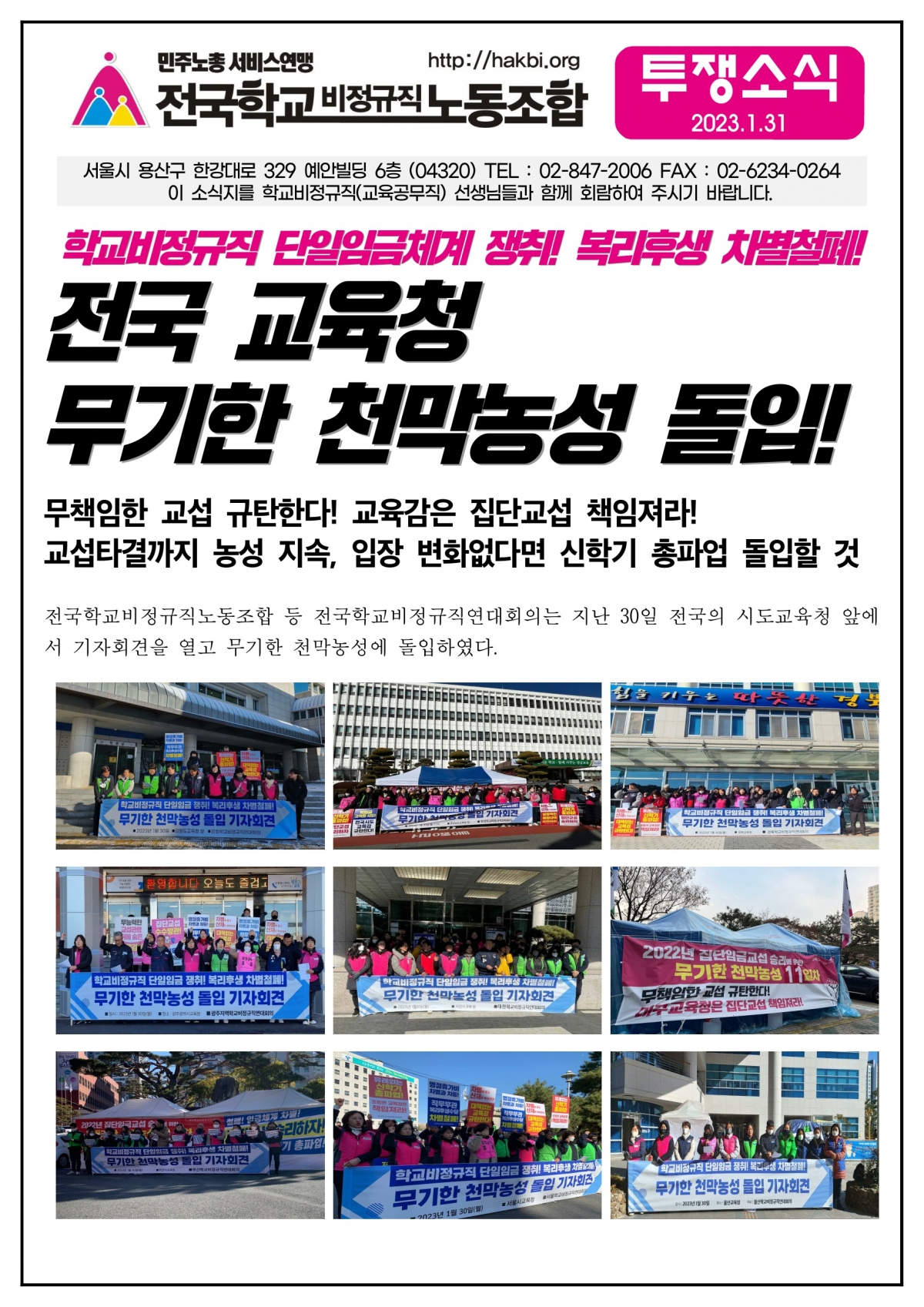 전국 교육청 무기한 천막농성 돌입!