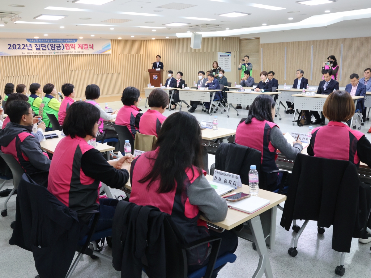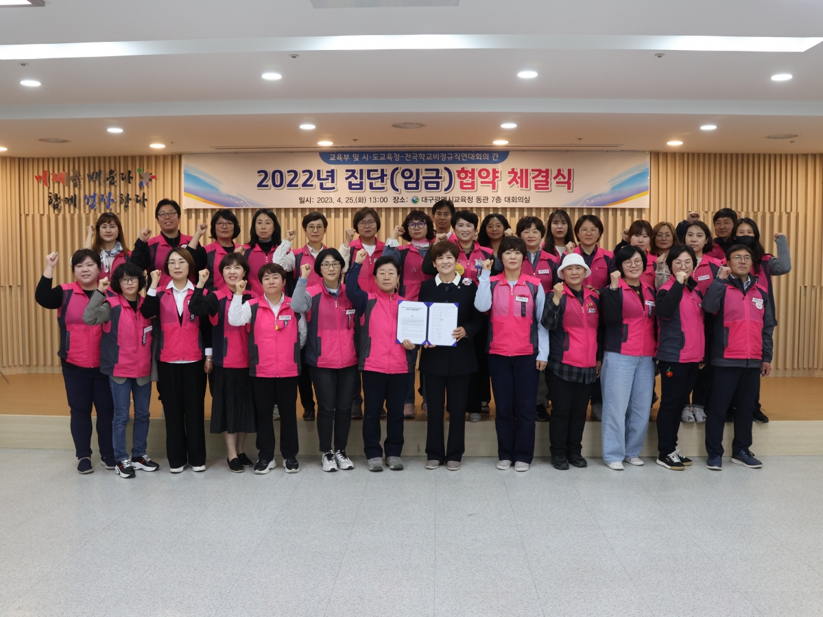 어제(25일) 대구교육청에서 ‘2022년 집단(임금)협약 체결식’을 진행했다.