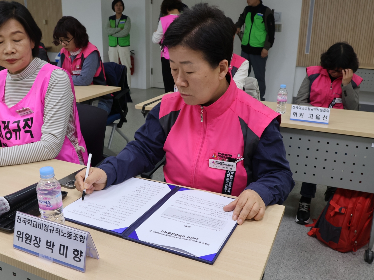 지난 4월 14일 잠정합의 후 조합원 전체 찬반투표를 통해 98%의 압도적 찬성으로 승인된 집단(임금)협약이 오늘 교육부, 전국 시도교육청과 전국학교비정규직연대회의 간의 최종 체결식에 따라 발효되었다.