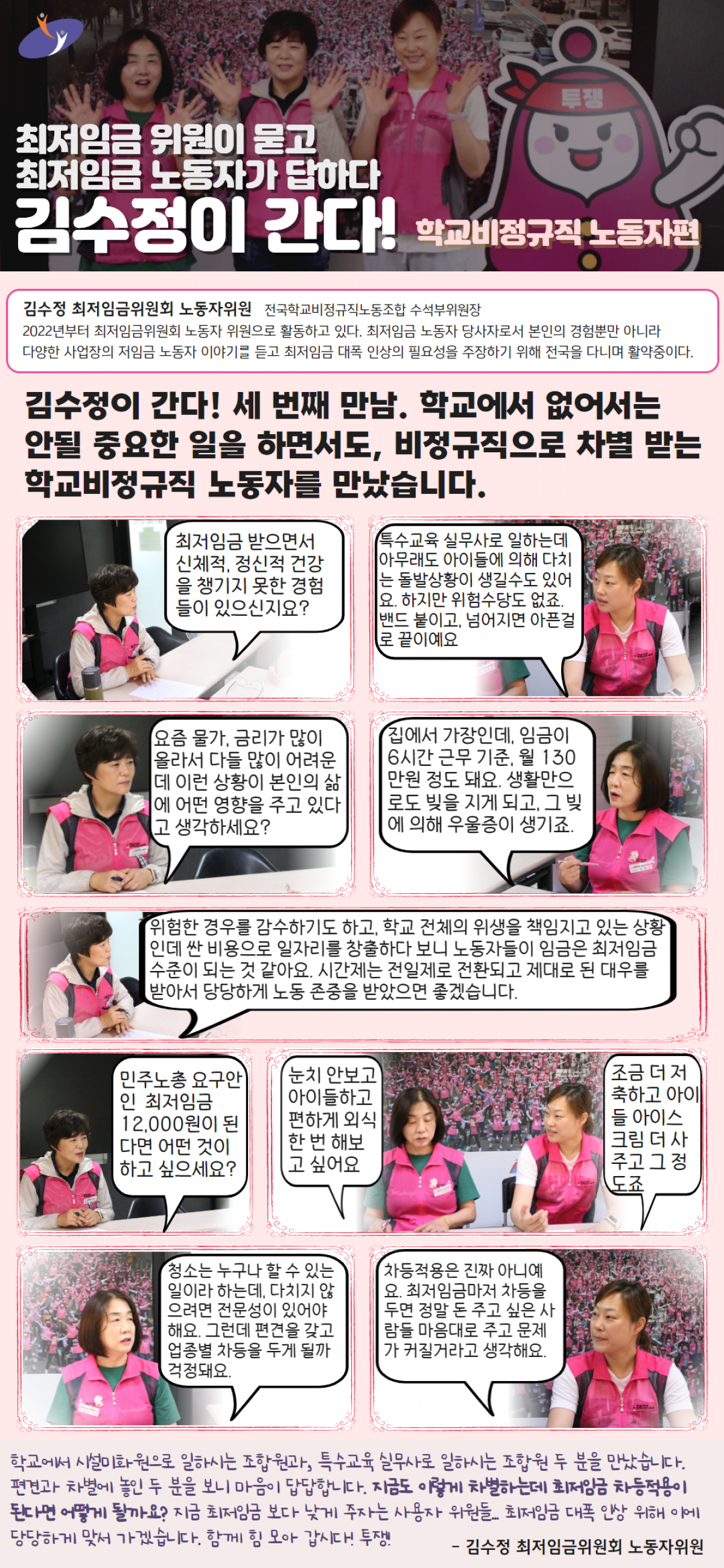 최저임금 위원이 묻고, 최저임금 노동자가 답하다! <김수정이 간다!> 학교비정규직 노동자 편