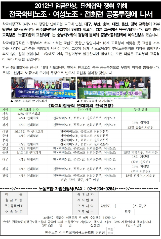 [학비연대회의 1호] 16개 시도교육청에 단체교섭 공문 발송!