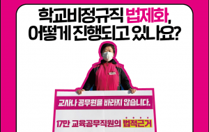 정은영 조합원은 "방중비근무라는 비정상적인 노동형태는 과감히 없애 버리고 정상적인 좋은 일자리"를 바란다며 방중비근무자들의 방중 교육훈련 배치, 자율연수 일수 점진적 증가 등 방학중에도 임금 걱정 없이 생활 할 수 있도록 상시전환과 근무일수를 늘리는 방향으로 교육청의 결단을 촉구했다.
