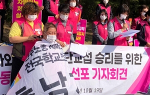 또한 “대다수의 학교비정규직노동자가 최저임금 수준의 임금을 받고 있다. 싼 값에 노동자를 고용하는 것”이라며 “아이들이 이런 차별을 보고 배우며 자란다. 교육을 담당하는 학교에서조차 이런 일이 벌어지고 있다”라고 말했다.