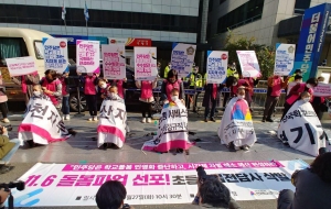 전국학교비정규직노동조합과 서비스연맹은 지난 28일(수) 세종시 교육부 청사 앞에서 "전국학교비정규직 급식실 노동자 건강권 쟁취 결의대회'를 열고 노동자들이 열악한 작업환경으로 인해 더 이상 직업성 암(폐암) 사망자가 발생하지 않도록 교육부 장관의 책임있는 행정을 촉구하였습니다.