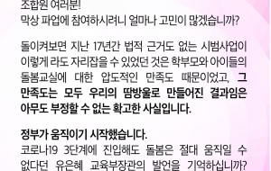 매주 화요일마다 국회 앞과 전국의 교육청 앞에서 돌봄 공공성 강화와 전일제 쟁취를 외치며 선전전을 진행하고 있습니다.