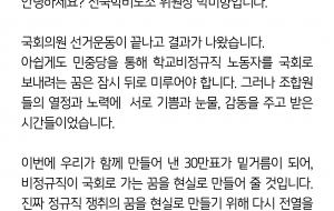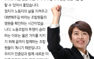 경북지부에서 산업안전보건위원회 노동자위원 선거를 진행중입니다. 우리는 민혜경 지부장님을 후보로 선거운동을 진행하고 있습니다. 각 지부와 본조에서도 선거운동 지원을 나섰습니다.