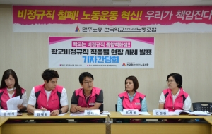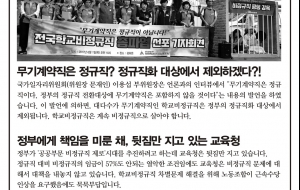 또한 가장 열악한 직원들의 임금, 그것도 정부가 최저생계비를 보장하기 위해 도입한 최저임금을 무력화시키고자 꼼수를 부리는 교육부,교육청의 비도덕적 행태를 규탄하였습니다.