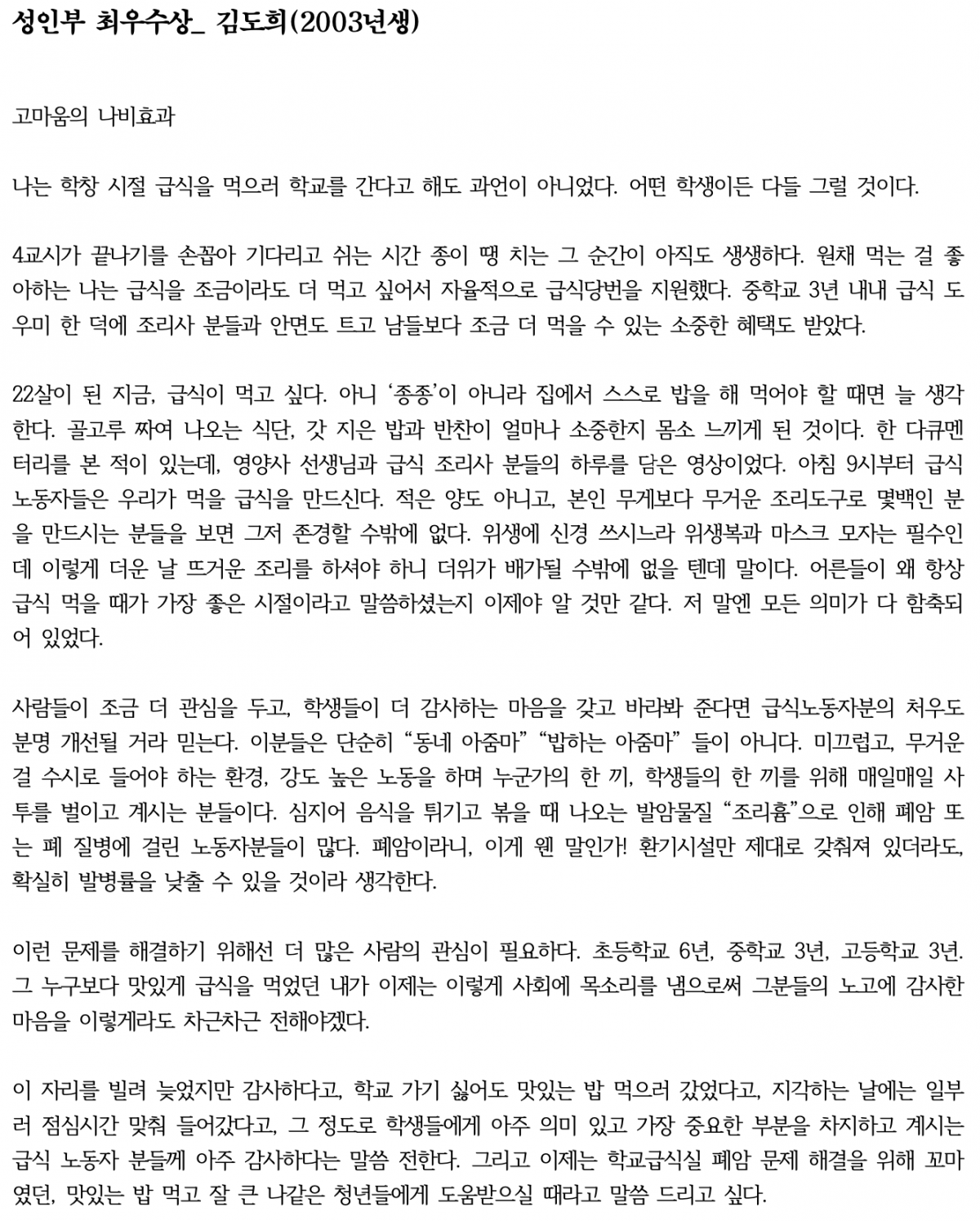 학교급식노동자 응원 작품 공모전 수상작_성인부 최우수상 김도희