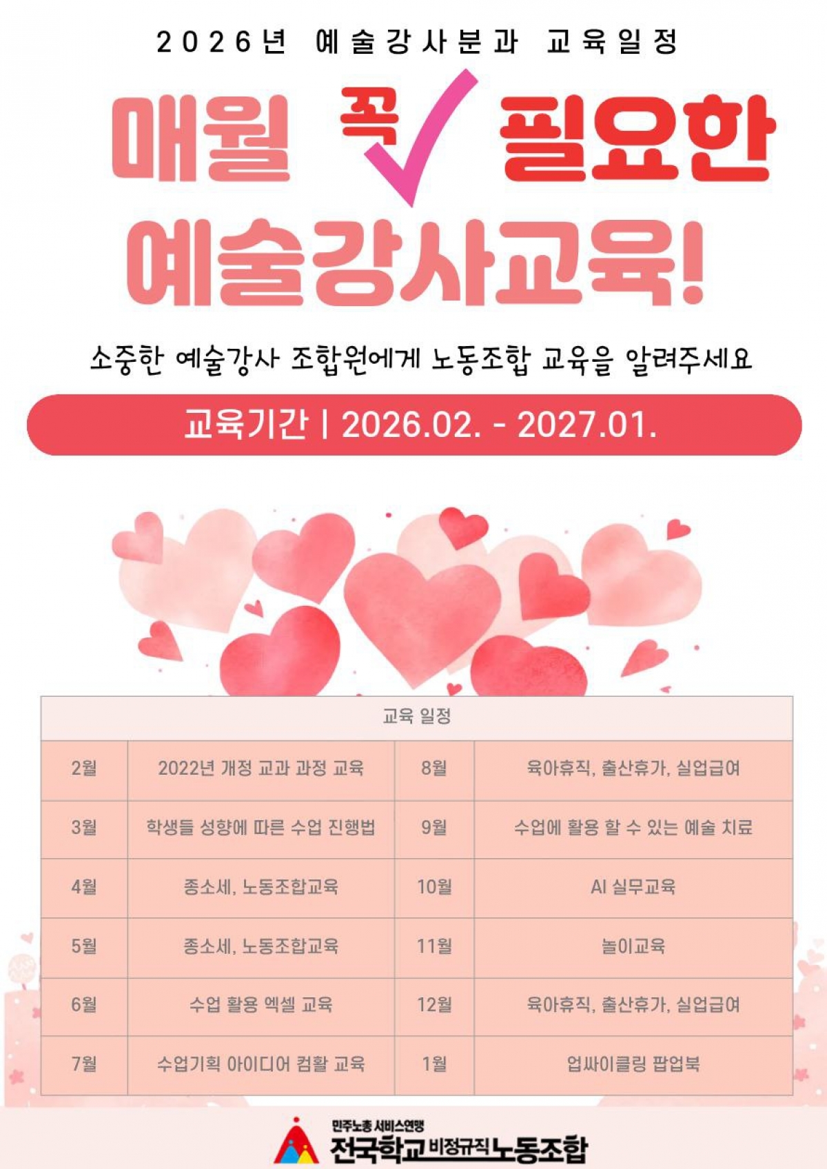 2026년 예술강사 조합원 교육 일정안내