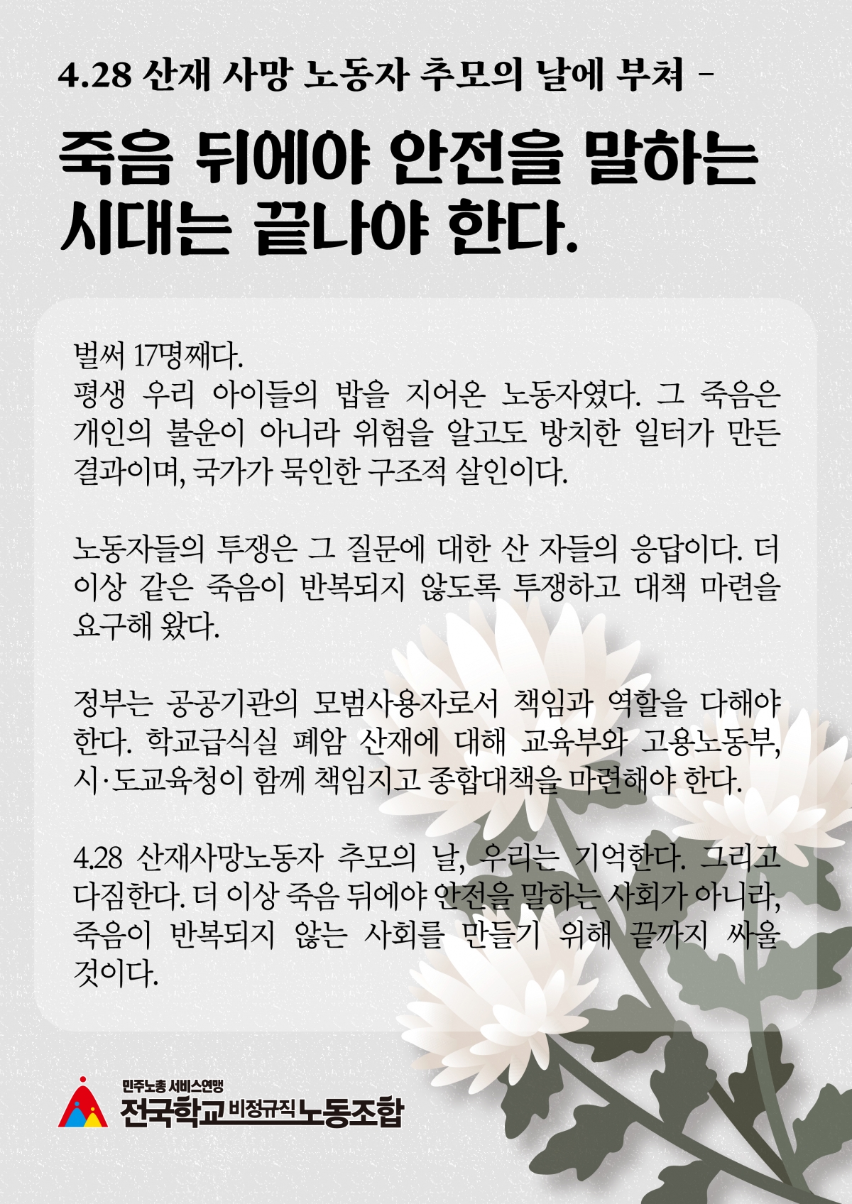 4.28 산재 사망 노동자 추모의 날(산업재해근로자의날)에 부쳐-