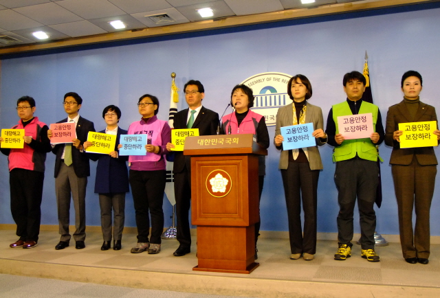우리는 매년 1만명 이상의 학교비정규직노동자들이 새학기를 앞두고 대량해고로 심각한 고용불안을 겪고 있으며 정부가 실질적인 고용안정 대책을 마련할 것을 주장하였다.