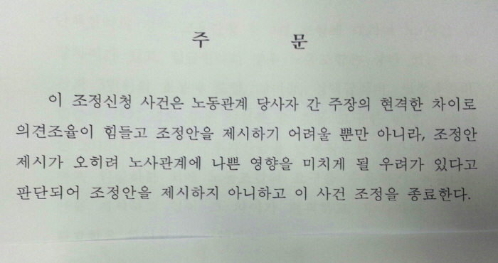 그러나 교육부는 이를 끝내 받지 않았고, 마침내 중앙노동위원회 조정위원들이 '조정중지' 결정을 내렸습니다.