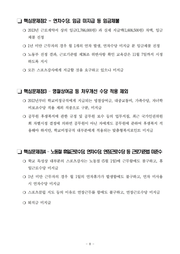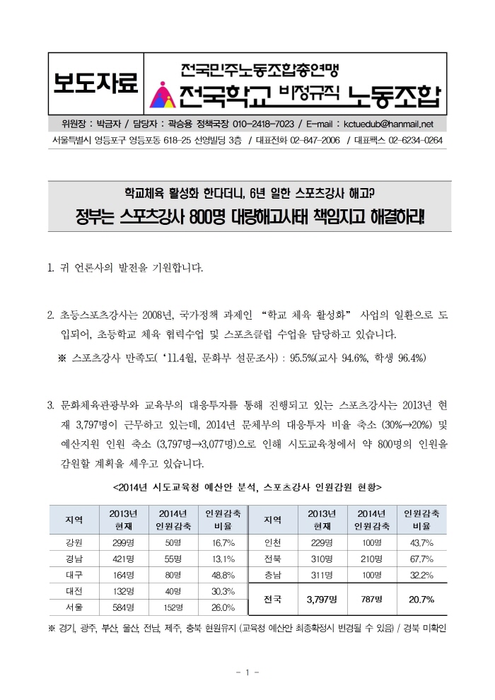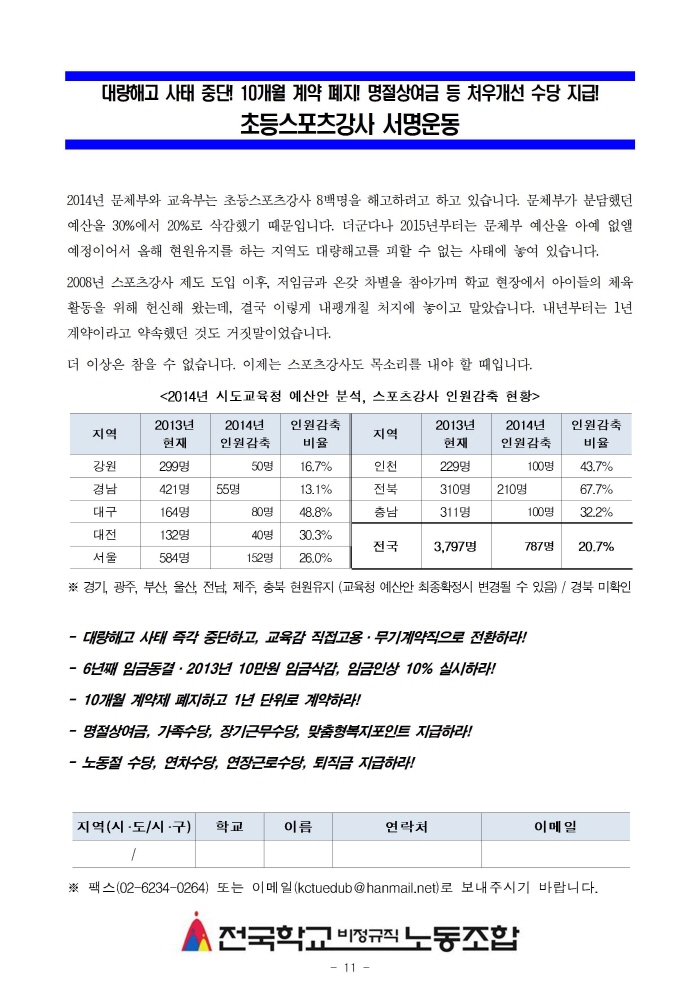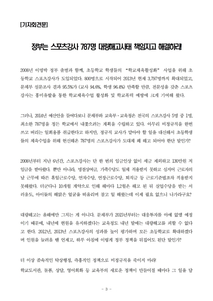 스포츠강사 800여명 대량해고 규탄! 긴급기자회견 & 서명운동