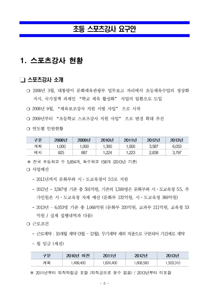 학생들의 생활체육을 강화한다면서 비정규직 강사를 대거 채용할 땐 언제고,