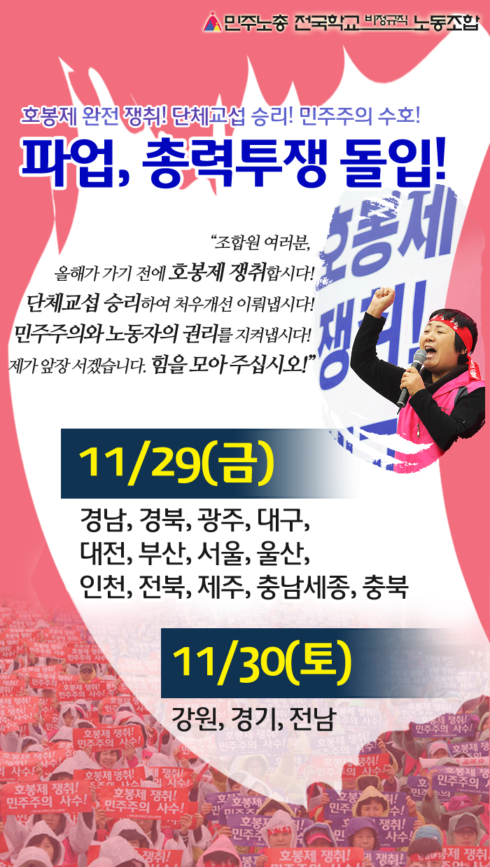 29~30 전국총력투쟁, 1만 조합원이 참여한다.