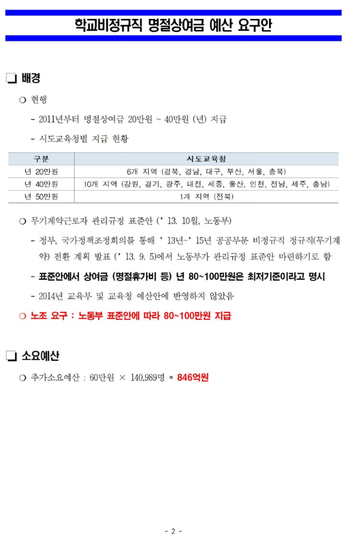 현재 국회에서 호봉제, 명절상여금 예산 논의 중!