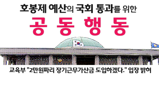 무엇보다 교육부가 국회의 증액 요구안을 수용하고 있기 때문입니다. 그동안 결사적으로 반대했던 교육부가 이번만큼은 1년에 2만원의 장기근무가산금 예산 증액을 수용하겠다는 겁니다.