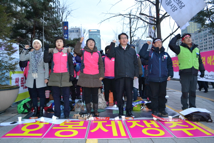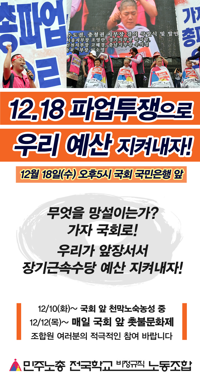 국회와 박근혜 정부는 당장 우리의 최소한의 요구인 학교비정규직 처우개선 예산안 통과시켜라!"