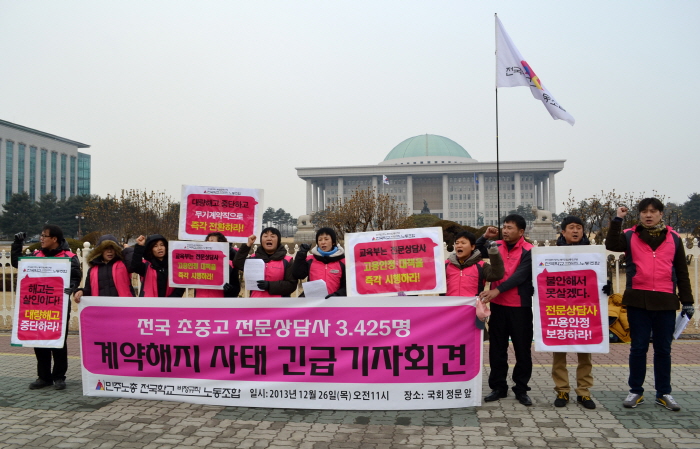 학교부적응, 위기가정 학생들을 상담하고 치유하는 Wee프로젝트 전문상담사, 학생 체육활동을 지도하는 스포츠강사등 학교비정규직노동자들이 추운겨울 길거리로 내몰리고 있다.