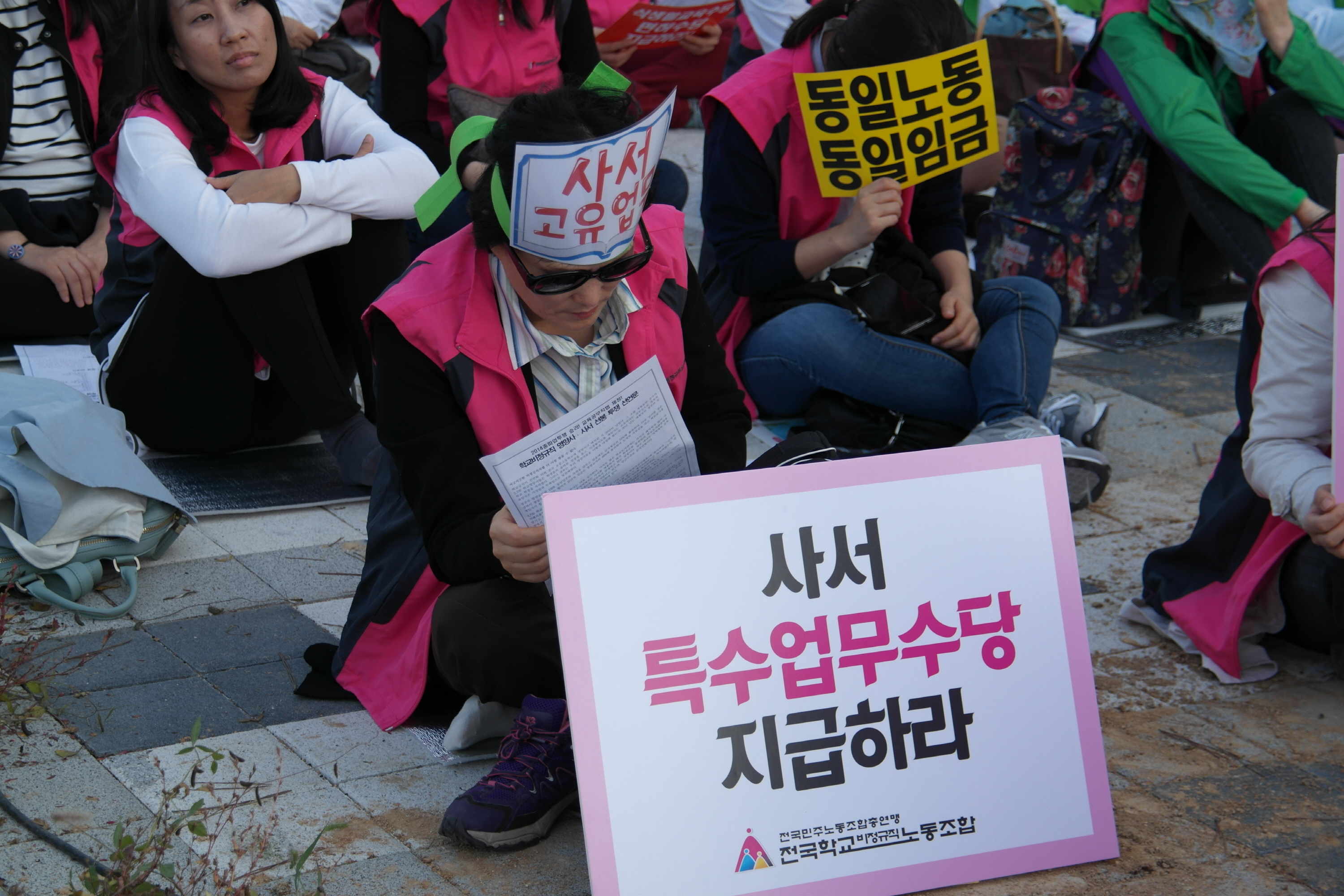 정규직 영양교사, 사서교사와 동일한 업무를 수행함에도 임금은 반토막, 동일한 자격을 갖추고 있음에도 수당 차별, 동일한 밥을 먹으면서도 밥값 차별, 동일한 명절을 맞이함에도 명절상여금차별, 정규직에게만 지급되는 성과상여금. 차별..차별..차별 학생들을 키워내는 대한민국 학교는 온갖 차별과 부당한 착취가 판치고 있다.