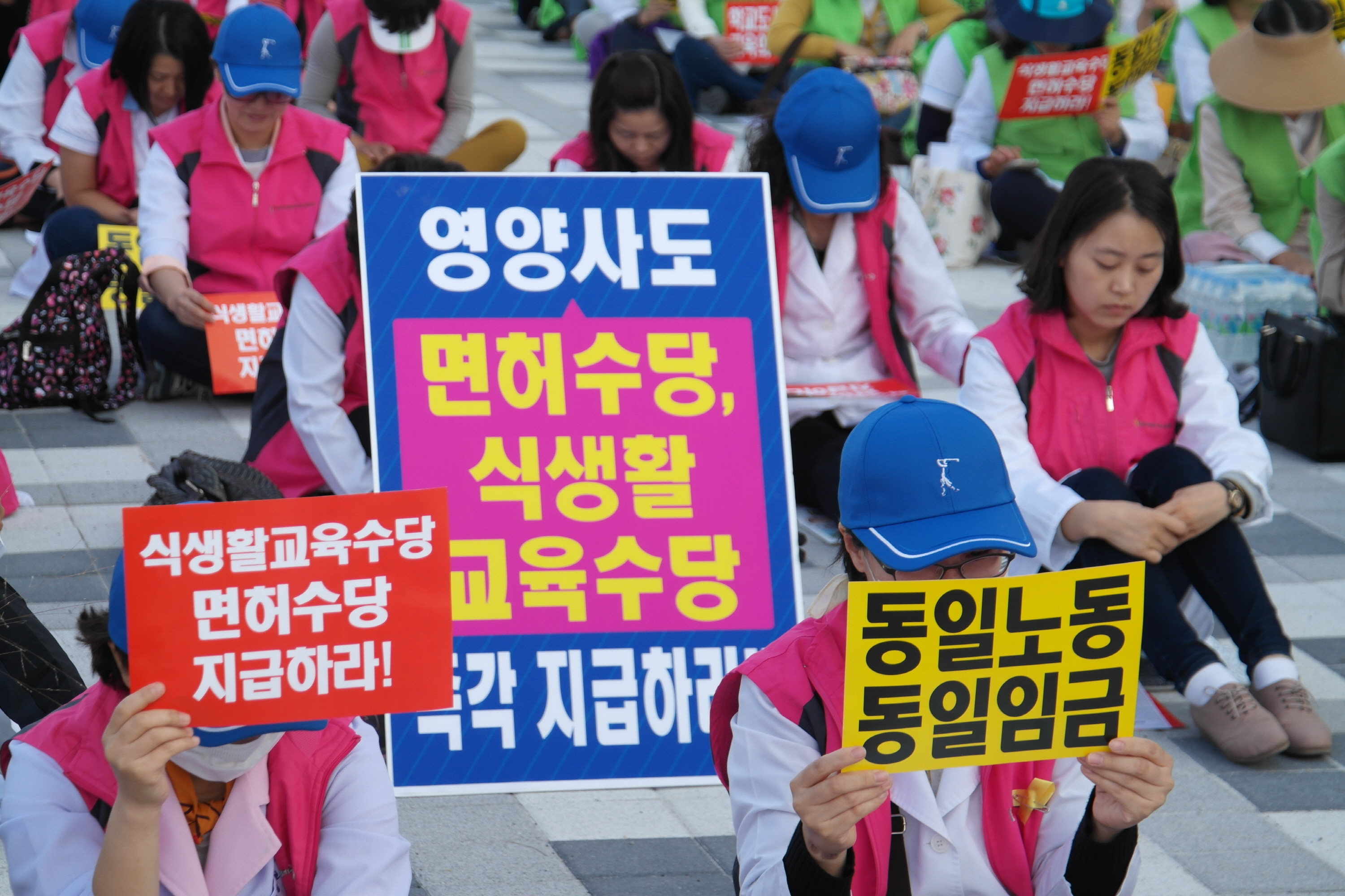 정규직 교사와의 기본급 차별, 정규직에게 지급되는 수십가지 수당들은 우리 영양사, 사서들에게는 전혀 지급되지 않고 있다.