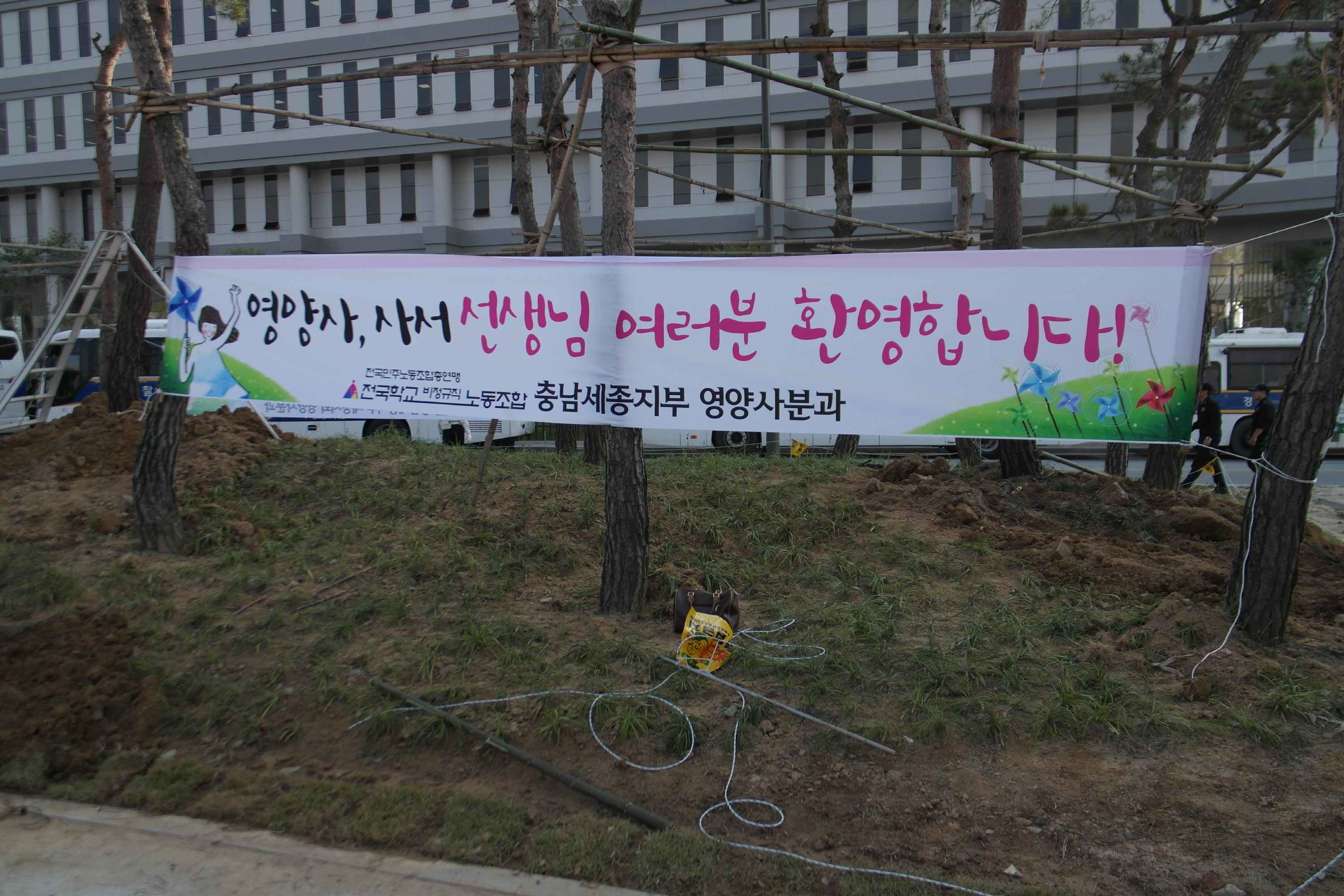 10월 8일 오후4시 세종시 교육부앞에서 '영양사, 사서 선봉투쟁 결의대회'를 열고 교육부의 무책임을 규탄하였습니다.