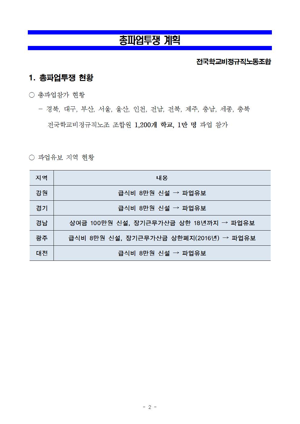 전국 3000개학교 2만명 총파업 돌입 보도자료