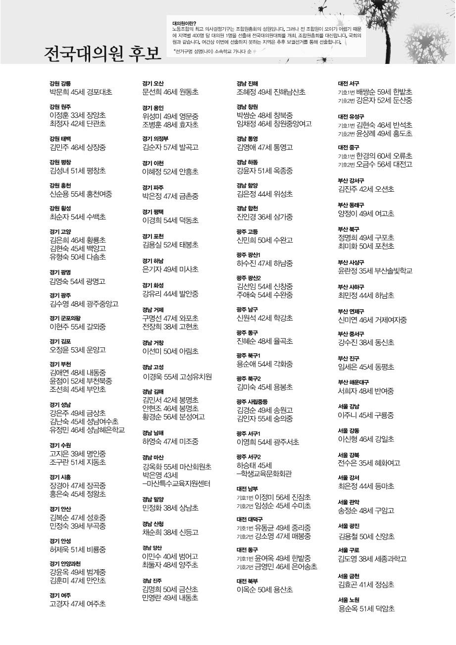[중선관위] 제4기 전국동시선거 중앙공보물 (본부임원,중앙위원,전국대의원)