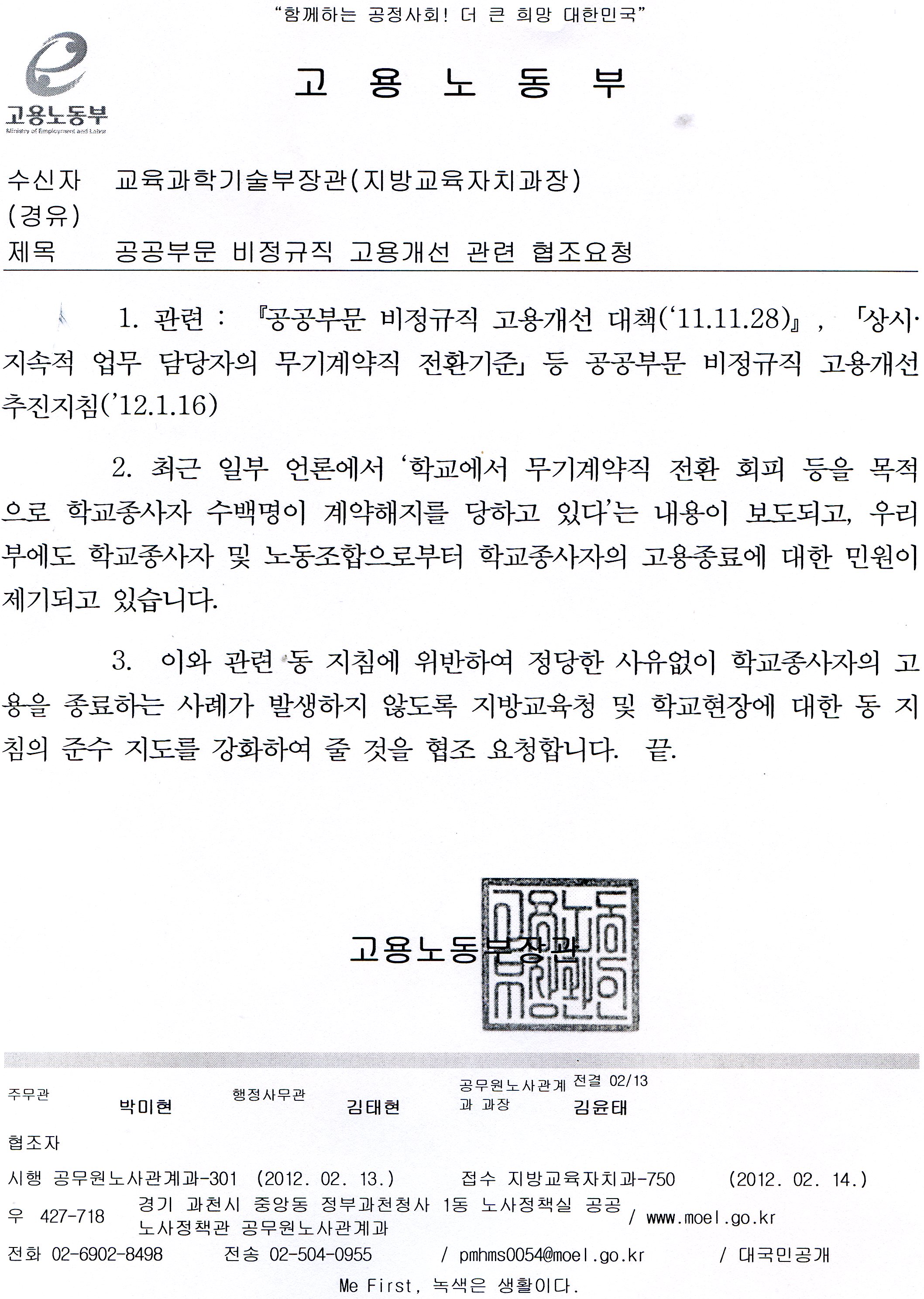 [고용노동부/교과부공문지침] 부당해고 방지