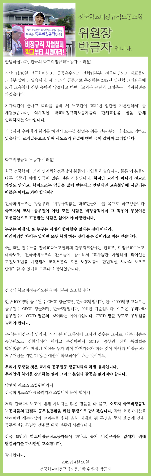 2012년 단체교섭을 위한 직종별 요구안을 모아주십시오